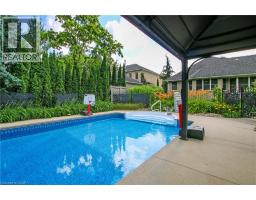 Welcome to this stunning stone bungalow in the desirable Alder Grange community of Woodstock. Set on a generous 66 x 218 lot backing onto walking trails, this home offers exceptional privacy and curb appeal with mature gardens. Inside, a spacious foyer with dual closets leads to an open-concept Family Room, Eating Area and Kitchen - perfect for entertaining. The Family Room features built-in cabinetry, sound-surround & a gas fireplace. The Kitchen boasts a Solatube skylight, breakfast bar, silestone countertops, double sink, ample cabinetry and a pantry. Enjoy meals in the casual Eating Area, formal Dining Room or the screened & glassed-in Sunporch. The Principal Bedroom is a private retreat with California shutters, a walk-in closet and an ensuite featuring a glass shower, jetted tub and heated floors. Additional rooms include a comfortable Guest Bedroom with double closet, a 4-piece bath and an Office/Bedroom with built-ins. A convenient Laundry/Mudroom offers a closet, built-in ironing board and a 2-piece bath. Hardwood and ceramic floors, pot lights, high ceilings and abundant windows fill the main level with light. The finished basement includes a spacious Rec Room with a bar area, built-ins, wine rack, wine cooler, gas fireplace and laminate flooring. A large Utility Room provides ample storage, a 400-amp panel, air exchange, irrigation controls, central vacuum and a walk-up to the double garage with epoxy floors. Outdoor spaces are perfect for entertaining with a stamped concrete driveway, patio, hot tub and gas BBQ. A pathway leads to the 18 x 36 inground saltwater pool with Gazebo, hidden solar blanket, clear deck system and solar/gas heating. This property is the complete package for buyers seeking a beautiful home in one of Woodstock's premier neighbourhoods. Don't miss your chance to make 596 Lakeview Drive your new paradise! (id:46441)