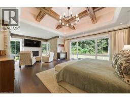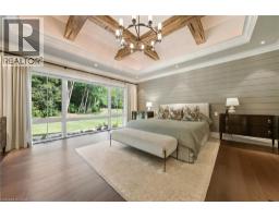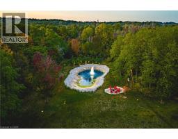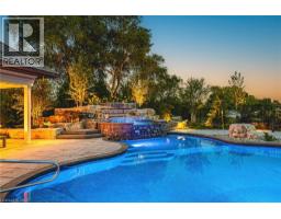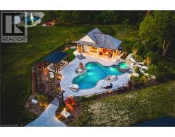 AMAZING! Custom Bungaloft nestled on a spectacular 12-acre property in Burlington. Featuring 5+1 bedrooms, 6 full bathrooms and 2 half baths with an attached triple car garage AND detached double car garage with storage loft! Boasting over 5,400 square feet PLUS an additional 4,300 square feet in the finished lower level. Resort-style exterior with a pool, hot tub, pond, cabana, outdoor kitchen, full bar, built in BBQ area, golf green, two firepits, a fireplace and 5+ forested acres! The main floor offers DUAL primary bedrooms- each with ensuite baths and large walk-in closets. There is also a main floor office and oversized dining room. The kitchen features a large island, stainless steel appliances and a walk-in pantry. The kitchen is open to the living room- which features 12’ ceilings and a stunning wood burning fireplace. There is also an oversized mudroom / laundry room with garage access and two powder rooms. The 2nd level of the home includes 3 large bedrooms and a 5-piece bathroom. The lower level (accessible by stairs OR elevator) features an amazing rec/family room, 6th bedroom, second kitchen, 2 full bathrooms, a wine cellar, gym, sauna, wet bar and plenty of storage! This home was custom built by Glen Oak Homes in 2016 and a main floor addition with full basement was added in 2024. The entire property was fully landscaped in 2023/2024. Interior and exterior ‘smart’ features throughout, highly efficient and fully private- a true paradise. Luxury Certified (id:46441)