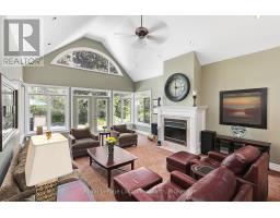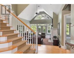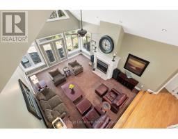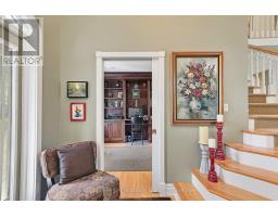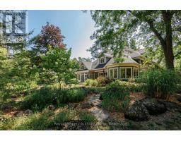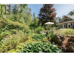 Nestled on a prestigious cul-de-sac, this beautifully crafted bungalow is a rare blend of luxury, space, and privacy. Surrounded by mature trees, two tranquil garden ponds with a charming waterfall feature, and beautiful private views, this property offers a peaceful retreat just minutes from town amenities. Built with exceptional craftsmanship, the home features a thoughtful main floor layout with a spacious primary suite, main floor laundry, and both a gas fireplace and a cozy wood-burning fireplace that add warmth and elegance to every season. The heart of the home opens to breathtaking views of the lush, private backyard, making it perfect for entertaining or quiet evenings at home. Upstairs, you'll find three generous bedrooms, a versatile den or movie room, and ample storage for family living or guest accommodations. A rare three-car garage provides plenty of space for vehicles, hobbies, or workshop needs. This is more than a home, it's a lifestyle property with timeless appeal, set on a large, landscaped lot in one of the area's most sought-after neighbourhoods. (id:46441)