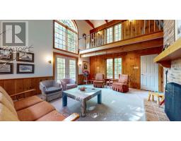 Lovely 5 bedroom chalet located on Devil's Glen property. Excellent weekend getaway with lots of space to entertain friends and family. Nestled in the trees for complete privacy. Large windows and skylight allow the natural sunlight to flow through. The main floor consists of a kitchen, dining, 2 pc. bath and boasts a large open concept great room with high ceilings, a wood burning fireplace and a walkout to deck. The second floor has a large primary bedroom along with a 4 pc. bath. The completely finished basement has a sauna, 3 bedrooms with built-in bunkbeds, a recreation room, ski tuning room and plenty of storage. Close proximity to ski hills, cross country skiing and trails. Buyer must be a member of Devil's Glen. (id:46441)