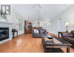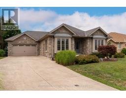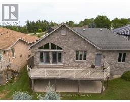 Backing directly onto the 11th hole of the Meaford Golf & Country Club, this all-stone bungalow offers sweeping views of the fairway and tranquil pond and unlike alot of other homes for sale on the course, this one is freehold with no monthly condo fees. Built in 2006 by respected builder Tom Clancy, its one of the best values in the area for golf course living.Nestled on a quiet cul-de-sac among other prestigious homes, youre just minutes to the marina and a short drive to Blue Mountain. The full stone exterior, symmetrical gabled rooflines, twin bay windows, and impressive front entry create timeless curb appeal. A concrete driveway leads to the oversized double garage, with plenty of parking for guests.Inside, natural light floods the space, highlighting the upscale finishes and craftsmanship. Hardwood floors run throughout the main level, while soaring ceilings create an airy, grand feel. The formal dining room features a tiered tray ceiling with pot lights, and the kitchen boasts rich wood cabinetry, a breakfast bar, and an open flow into the spacious living room with a gas fireplace and a wall of windows framing the golf course view. Step onto the elevated deck with glass railings and soak in the peaceful vista of the pond and manicured greens.The primary suite is generously sized with spectacular backyard views, a walk-in closet, and a spa-like ensuite with tiled glass shower, double vanity, and jacuzzi tub. A second bedroom or office, main floor laundry, add convenience.The finished lower level includes a rec room with walkout to the backyard, a third bedroom, 3-pc bath, and plenty of room to expand.If youve been dreaming of golf course living without the condo fees, this rare freehold property combines beauty, value, and an unbeatable lifestyle. (id:46441)