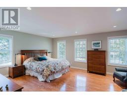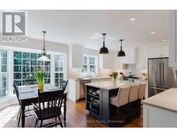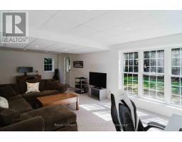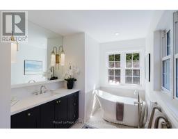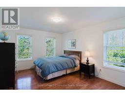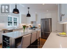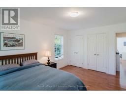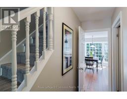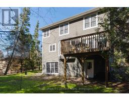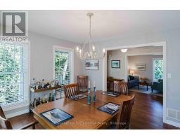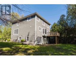 Nestled within a quiet cul-de-sac in Port Elgin, this handsome traditional two-storey home offers a rare blend of sophisticated living and natural tranquility. The property features a private treed lot of approximately one-half acre, where a gentle stream defines the back of the expansive lot, creating a true woodland sanctuary. Located in a coveted enclave just steps from the sandy shores of Gobles Grove, the residence greets you with a welcoming front porch and attractive, low-maintenance wood siding.The main level features engineered hardwood throughout, offering formal living and dining rooms alongside an exquisite powder room with designer wallpaper. The cozy family room is centred by a wood-burning fireplace, while the renovated kitchen serves as the heart of the home, boasting a breakfast bar, wine cooler, pantry, and a bright eating area that opens to a deck overlooking the serene backyard. Upstairs, maple hardwood floors lead to four spacious bedrooms, including a primary retreat with a newly renovated, spa-like ensuite.The walk-out basement provides flexible lifestyle space with a large, sunlit recreation room and plumbing ready for a future fourth bathroom. Practicality meets luxury with significant mechanical updates, including a brand-new roof (April 2026), furnace and AC replaced in 2022, and the added security of a Generac backup generator. Complemented by a double concrete drive and a garden shed, this property is a truly special Port Elgin retreat. (id:46441)