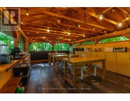 Rare Commercial Waterfront Opportunity in Parry Sound - Harmony Outdoor Inn. A truly rare opportunity to acquire Parry Sound's only waterfront hospitality retreat or use personally for your own private oasis! This well-established and highly rated business sits on 14.16 acres of commercially zoned waterfront land, boasting nearly 500 feet of shoreline on the scenic Seguin River and surrounded by tranquil forest trails. Minutes from the downtown core, yet immersed in nature, this unique property offers an unparalleled fusion of seclusion and convenience. Zoned for six guest suites and up to ten campsites or tourist accommodation units (up to 500 SF each), the property presents a tremendous opportunity for a visionary entrepreneur or outdoor enthusiast seeking to grow an already thriving enterprise. The main house features three bedrooms, further sleeping accommodations in the lower level, and inviting open concept common living and dining spaces. Two wood burning fireplaces on the main floor and lower level. A thoughtfully designed Pavilion anchors the property, offering guests, friends & family a communal hub for dining, working remotely, or relaxing after a day of adventure. Seven glamping-style campsites are already in place, each outfitted with eco-conscious, chemical-free composting outhouses. At the waters edge, guests enjoy a sandy beach, dock, yoga platform, fire-pit and serene riverfront vistas ideal for kayaking, canoeing, stand-up paddle-boarding, or simply unwinding by the water. In the winter, the experience transforms with snowshoeing, skating, and cozy fireside moments, offering four-season revenue potential. This is a once-in-a-generation offering; a fully zoned, turnkey hospitality retreat or personal oasis. All within moments of Parry Sound's vibrant shops, restaurants, and hospital, with direct highway access. A premier investment and lifestyle opportunity unlike any other in the region. (id:46441)