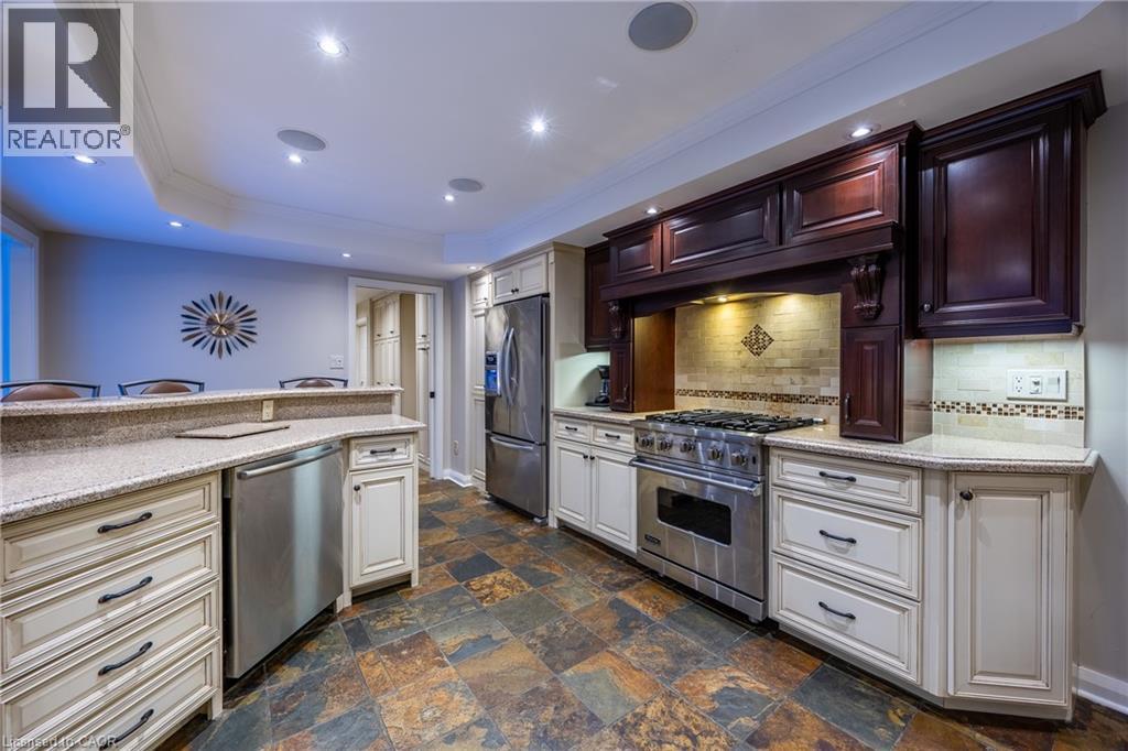 Located in Simcoe’s most exclusive, quietest and mature neighbourhood. This beautifully maintained 5-bedroom, 3-bathroom, 2,600+ sq. ft. home is surrounded by tree-lined streets and backing onto the Norfolk Golf & Country Club. This brick 2- storey home offers the perfect blend of privacy, comfort, and convenience. Step inside to a spacious main floor featuring gleaming hardwood, a sun-filled living room with wall-to-wall windows, and a floor-to-ceiling natural stone wood-burning fireplace. The gourmet kitchen is a chef’s dream, complete with granite counters, a Viking gas stove, high-end appliances, Winger cabinetry, a pantry, and views of the backyard and pool. A 2-piece bath, mudroom/laundry with side entrance, and direct access to the backyard complete the main level. Upstairs, the primary bedroom includes a 4- piece ensuite, while four additional bedrooms share a large 4-piece bath with granite counters and double sinks—perfect for families or guests. The lower level offers a recroom with custom built-in shelving and a spacious unfinished area ideal for storage. The backyard is your private retreat: a fully fenced, heated kidney-shaped pool, expansive flagstone patio, pool house, retractable awning with LED lighting, built-in sound system, and lush landscaping. Ornamental trees, perimeter lighting, and a driveway with parking for 10 add to the curb appeal. Located just minutes from downtown Simcoe’s restaurants, shopping, schools, and hospital—and only a short drive to Norfolk County’s best beaches, trails, wineries, golf courses, and marinas—this is more than a home; it’s a lifestyle opportunity in the heart of Norfolk County. Check out the virtual tour and book your private showing today. (id:46441)