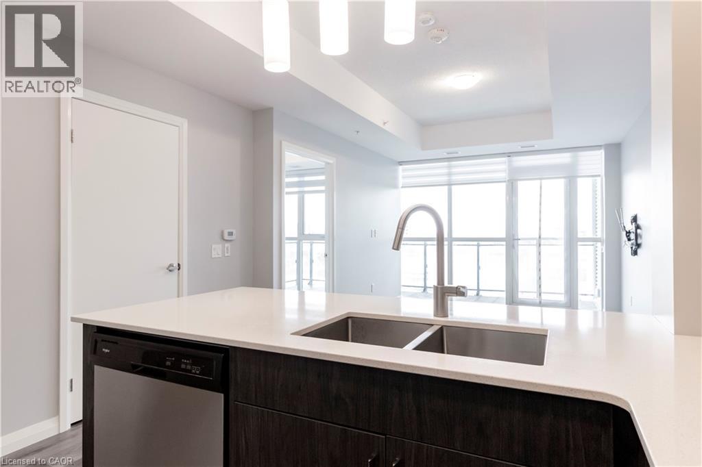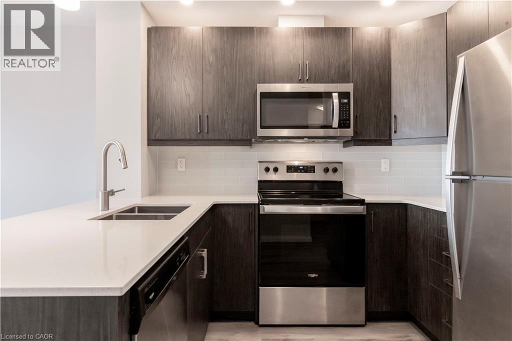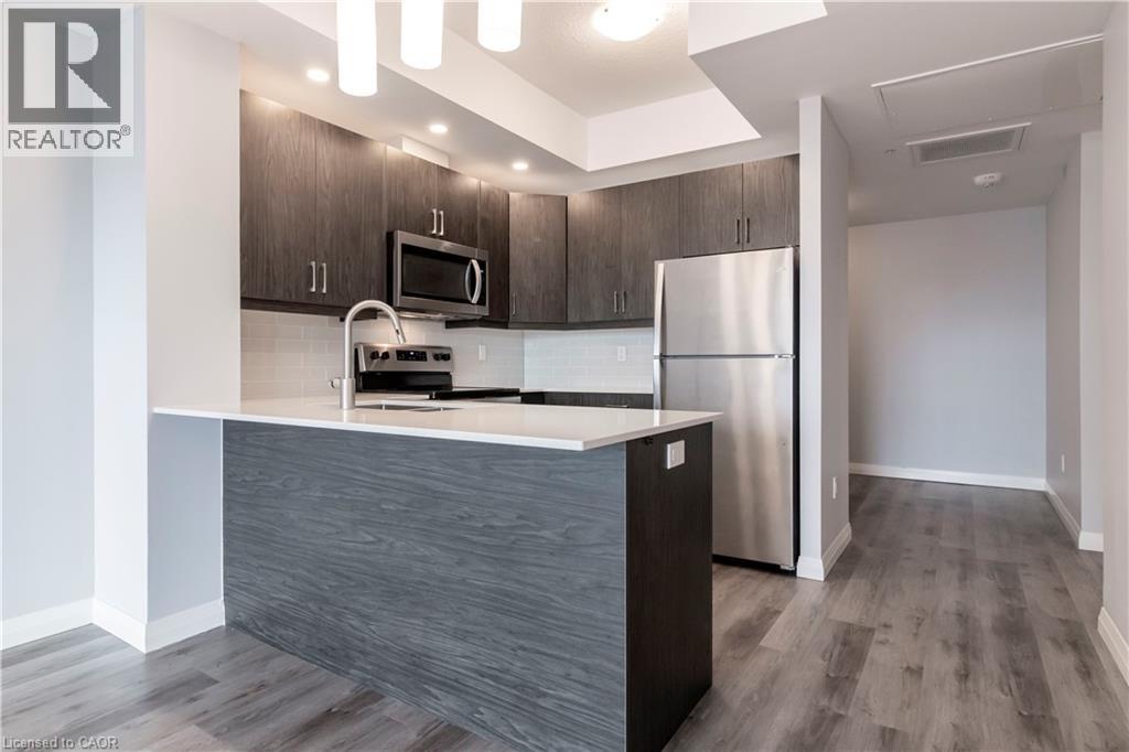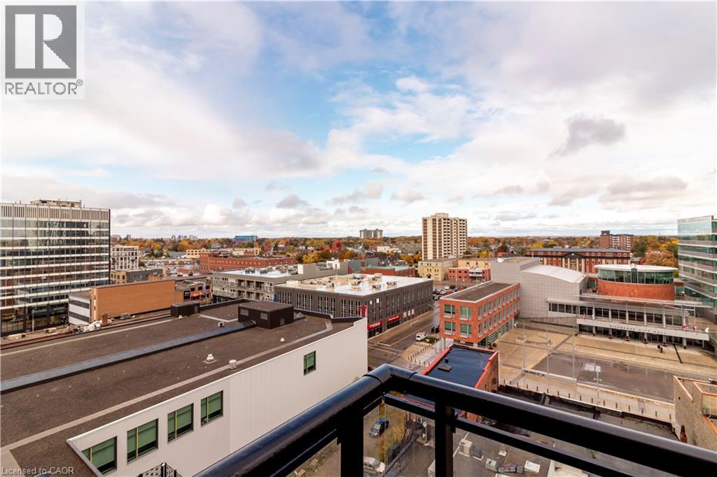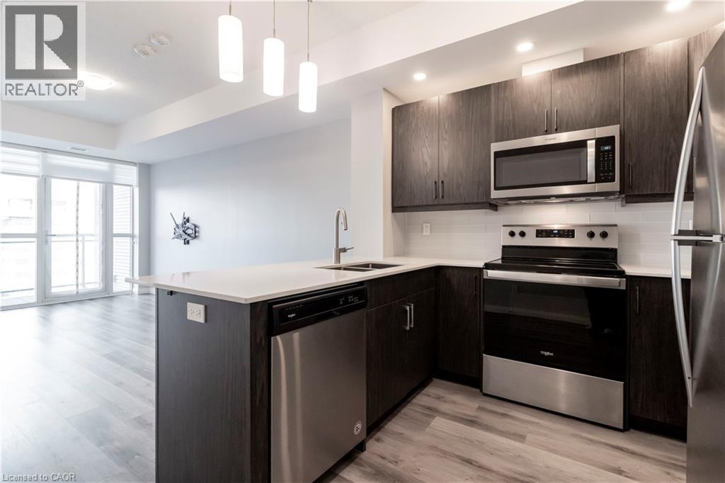 Vacant and ready to lease now! In one of downtown Kitchener's trendiest new buildings, Charlie West, here lies an opportunity to lease a condo in pristine condition. Suite 1111 is an accessible unit and offers 733 sqft of spacious interior living space with an impressive 109 sgft private balcony with eastern sunrise views of downtown Kitchener. The 1 bed/1 bath plus Den condo features upgraded flooring throughout with no carpet, a spacious kitchen with white quartz countertops, stainless steel appliances, pot lights, and a breakfast bar with seating for 3. Charlie West is an upscale, 31 story, modern glass design condominium developed by Momentum, and loaded with amenities such as a fitness centre, entertainment room, social lounge, outdoor terrace, pet run, and a concierge. There is a parking license included for underground secure parking. Situated in the heart of downtown Kitchener, you'll be immersed in a vibrant community filled with local eateries, trendy boutiques, Victoria Park, School of Pharmacy, Innovation District, and steps to the Google headquarters. Charlie West’s central location provides easy access to public transportation including the LRT and upcoming transit hub, making your daily commute a breeze anywhere in Waterloo Region or Toronto. Call today for your private showing. (id:46441)