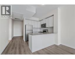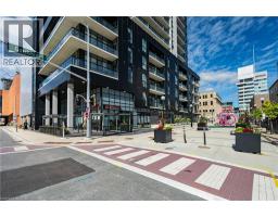 Excellent opportunity to live in or invest! Experience contemporary & refined living at the coveted Charlie West development, ideally located in the bustling heart of downtown Kitchener's vibrant #InnovationDistrict. This stunning south-facing 1-bed+den (2nd bedroom), 1-bath condo offers 767 SF of modern living at its finest, combining contemporary elegance w/ refined style. The open-concept layout is bathed in natural light, w/ to floor-to-ceiling windows, creating a bright & inviting atmosphere. The interior boasts beautiful laminate flooring, porcelain tile, & sleek quartz countertops throughout. The modern kitchen, equipped w/ stainless steel appliances, is perfect for both cooking & entertaining. The spacious kitchen, dining, & living areas flow seamlessly, providing an ideal space for relaxation. Completing this unit is a generously sized bedroom & a 4-pce bath. The added convenience of in-suite laundry further enhances the property’s appeal, combining functionality w/ modern living comforts. From the comfort of your own private balcony, you can take in breathtaking views of the city. 1 underground parking spot and 1 locker is included with the purchase. Charlie West offers exceptional amenities, including a dedicated concierge, fully equipped exercise room, entertainment room, cozy lounge, outdoor pet area, expansive terrace with community BBQ’s, & much more. Experience the ultimate in premium downtown living w/ easy access to all that the vibrant Innovation District has to offer, as well as other downtown attractions & amenities. Plus, w/ the ION LRT route just steps away, you'll be able to easily explore all that Kitchener has to offer. Don't miss out on the opportunity to make this exquisite property your own! Disclosure: Please note, at the current tenant’s request for privacy, the photos shown ARE NOT of the actual unit currently listed for sale. They are from a different unit in the building with the identical layout and size. (id:46441)