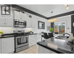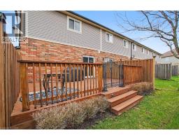HONEY, START THE CAR—THIS IS THE ONE YOU’VE BEEN WAITING FOR! Welcome to 60 Cloverleaf Dr, Unit 31 - an end-unit townhome in Ancaster’s sought-after Meadowlands, finished in a striking black-and-white designer palette that feels straight out of a magazine. The upgraded kitchen features sleek cabinetry, black quartz counters, upscale appliances, and under-cabinet lighting, flowing into a bright dinette with walkout to a private deck—BBQs allowed. The living space is generous and versatile, anchored by dark hand-scraped engineered hardwood that continues upstairs. The primary suite offers a large walk-in closet and a spa-inspired ensuite with soaker tub and separate shower, while the main bath stuns with bold Venetian plaster. This unique end-unit layout offers added privacy with a tucked-away front entrance just steps to visitor parking, plus standout curb appeal with flagstone walkway and upgraded porch finishes. Parking for 2, low condo fees, and an unbeatable location close to shopping, restaurants, schools, parks, and highway access. Aggressively priced for a quick sale—don’t miss your shot. Book your showing today. (id:46441)