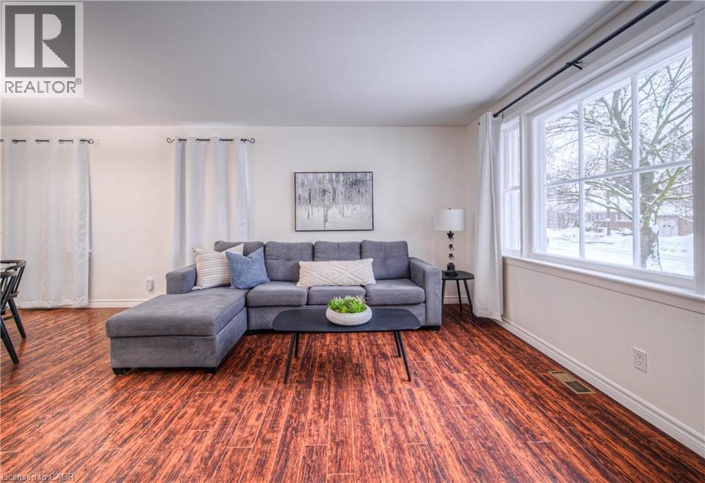 Welcome to 60 Dudhope Ave: a beautifully maintained all-brick bungalow offering modern updates while preserving its classic charm. This rare open-concept main floor layout creates a bright, spacious living environment perfect for everyday living and entertaining. The home has been thoughtfully updated throughout with the top features being: 1. UPDATED THROUGHOUT: A fully updated home with refreshed kitchen cabinets, countertops, and backsplash with ceramic flooring including a main floor bathroom with a modern 4-piece layout and quality finishes. 2. FINISHED BASEMENT: The finished basement adds excellent additional living space, featuring a large recreation room and plenty of storage for any family’s needs 3. LARGE LOT: The large corner lot allows for lots privacy and parking for two cars. 4. LOCATION: This property is perfectly situated in a quiet neighbourhood while being close to all major amenitites. You'll be less than 10 minutes to Cambridge Memorial Hospital, many major anchor stores and downtown Cambridge. 5. UPGRADES: Major notable upgrades include the furnace (2023), A/C (2019), hot water heater (2017), roof (2016), basement (2024). (id:46441)