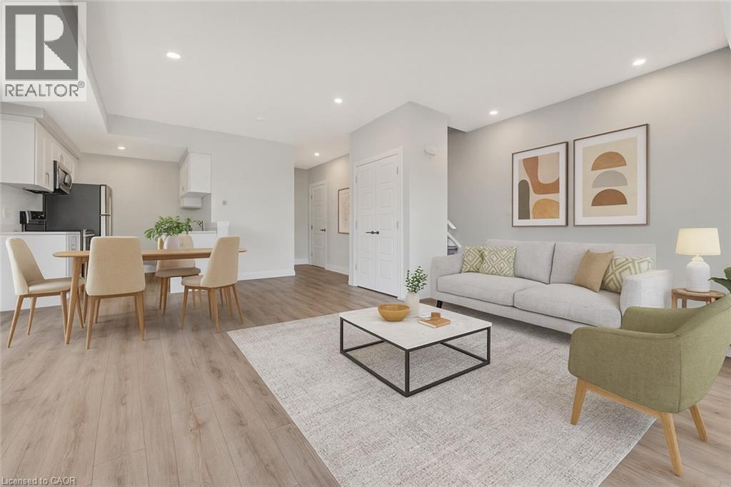 Welcome to a beautifully designed, like-new stacked condo townhouse, offering a stylish and low-maintenance lifestyle. This bright and spacious unit features 2 well-sized bedrooms, 1.5 bathrooms, and one parking space, making it ideal for first-time buyers, young professionals, downsizers, or investors. The open-concept main floor features modern pot lighting, and durable, carpet-free flooring throughout, creating an airy and inviting feel. The contemporary kitchen is outfitted with sleek stainless steel appliances, ample cabinet space, and quartz countertops, perfect for everyday cooking and entertaining. The main floor also includes a convenient powder room and large windows that flood the space with natural light. Upstairs, the two bedrooms offer privacy and comfort, with the primary bedroom featuring a walk-in closet and both bedrooms sharing a full 4-piece bathroom. This unit is tucked toward the back of the complex, offering added privacy and quieter surroundings, and includes a private balcony—perfect for enjoying morning coffee or evening relaxation. A designated parking spot is included, and the property is well-maintained with amenities like a secure bike shed and visitor parking. Located in a highly walkable and connected area of Kitchener, the home is close to public transit, including nearby bus stops and easy access to the ION LRT system. Everyday conveniences are minutes away, including Highland Shopping Centre, grocery stores, restaurants, coffee shops, and more. Victoria Park—one of Kitchener’s most cherished green spaces—is just a short drive or bike ride away, offering trails, events, and scenic views year-round. This condo blends modern finishes, functional layout, and unbeatable location into a truly turnkey opportunity—ideal whether you're moving in or renting out. Don’t miss your chance to own a home that offers all the advantages of newer construction, great amenities, and a prime urban lifestyle. (id:46441)