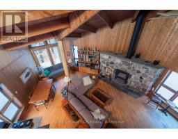 Contemporary home in a 24 acre treed setting on a quiet road in Chatsworth. A winding driveway leads to the private, custom-built home, designed to take in the natural landscape. Soaring ceilings, exposed beams and interesting angles provide spacious rooms. The living room features a grand stone fireplace (wood burning), dining area and kitchen, good sized foyer, 3 piece bath and a screened in porch overlooking the back yard with terraced gardens. The second level features 2 bedrooms, laundry and a 5 piece bathroom. There is interior access from the attached double garage. The property is a series of trails that lead through the hardwood and softwood bush, over the stream and back to the Sugar Shack where maple syrup has been a neighbourhood tradition. The property backs on to a natural pond. Great location approximately 15 minutes to Markdale, 15 minutes to Durham and 20 minutes to Owen Sound. (id:46441)