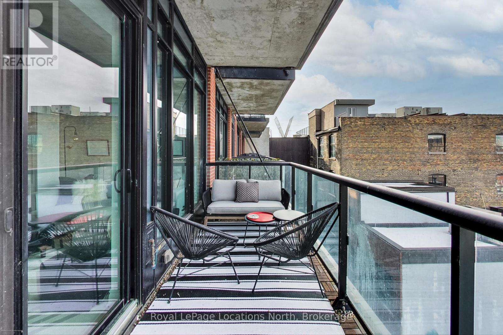 Beautifully-furnished loft at The Harlowe--a sleek boutique building where industrial cool meets modern luxury, in desirable King West, Toronto. This fully-upgraded rare beauty with parking and a large balcony featuring unobstructed views includes: 10 ft. ceiling height, floor-to-ceiling windows, hardwood floors, exposed concrete, custom centre island with seating for four, B/I electric fireplace with concealed TV lift, B/I Murphy bed for guests, multiple storage cabinets throughout and gas hook-up on balcony. Residents have access to all building amenities, including: concierge, gym and party/meeting room. Steps to both King West & Queen West to enjoy restaurants, bars, boutiques, parks, grocery stores and more! Easy commute to the core. Close access to Lakeshore paths and the Gardiner. (id:46441)