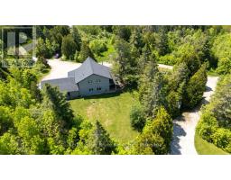 Where Elegance Meets Country Living - Discover the perfect blend of modern comfort and rural tranquility on this private 24-acre retreat, located just minutes from Tobermory. Enjoy the serenity of nature without sacrificing proximity to town conveniences and amenities. This custom-built 3-bedroom, 2.5-bathroom home offers 2,760 sq. ft. of thoughtfully designed living space, completed in 2018. Designed for comfort and efficiency, the home features radiant in-floor heating, soaring vaulted ceilings, and an abundance of natural light that enhances the open-concept layoutideal for both everyday living and entertaining. The chefs kitchen is a true standout, complete with a large island, two propane ranges, a farmhouse sink, and custom concrete countertops - ready for your next culinary creation. The spacious primary suite is a luxurious retreat, featuring a spa-like ensuite with a soaker tub, double vanity, walk-in shower, separate water closet, and direct access to a covered deck with hot tub. A large walk-in closet adds to the suites appeal. Upstairs, a versatile loft space provides endless possibilities - use it as a home office, gym, family room, or all three. The homes passive solar design and in-floor heating ensure year-round energy efficiency and comfort. A fully insulated and heated double garage with inside entry offers convenient parking or the potential for a year-round workshop. The outdoor space invites you to embrace country living - garden, gather around the firepit, or tend to your own chickens. With direct access to snowmobile trails and summer hiking paths, theres something for every season. This property truly embodies the best of both worlds: modern elegance in a peaceful country setting. (id:46441)