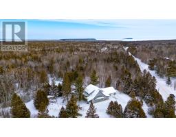 Elegance Meets Country Living on 24 Acres! Welcome to your private rural retreat just minutes from Tobermory. This exceptional country property offers the perfect balance of peaceful acreage living and convenient access to shops, amenities, recreation, and the stunning natural attractions of Northern Bruce Peninsula. Established in 2018, this custom 3-bedroom, 2.5-bath home offers approximately 2,760 sq. ft. of thoughtfully designed living space, ideal as a full-time residence, executive country home, or recreational getaway. The open-concept layout features soaring vaulted ceilings, expansive windows, and abundant natural light, creating a bright and inviting atmosphere for everyday living and entertaining. Designed with efficiency and comfort in mind, the home includes radiant in-floor heating and passive solar design for year-round energy savings. The chef-inspired kitchen is a standout feature with a large island, dual propane ranges, farmhouse sink, and custom concrete countertops - perfect for hosting family and friends. The spacious primary suite serves as a private sanctuary, complete with a spa-like ensuite featuring a soaker tub, walk-in shower, double vanity, separate water closet, and direct access to a covered deck with hot tub. A generous walk-in closet adds functionality and style. The upper-level loft provides flexible space for a home office, fitness area, studio, or additional living area. Outdoors, enjoy the freedom of 24 acres of land, ideal for hobby farming, gardening, or simply embracing nature. A fully heated, attached double garage offers year-round parking, workshop potential, or storage for recreational equipment. With direct access to snowmobile trails plus nearby hiking trails and water access, this property supports an active four-season lifestyle. An outstanding opportunity to own a modern rural home with acreage in a sought-after location - perfect for buyers seeking privacy, recreation, and investment in Bruce Peninsula real estate. (id:46441)