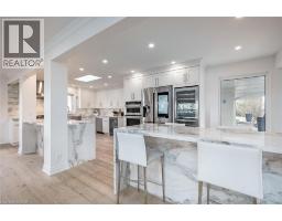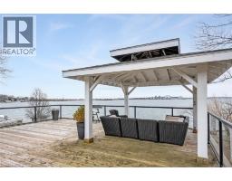 Extensively updated waterfront home offering over 6900 square feet of total living space including 6 bedrooms, 4.5 baths, and three self-contained living spaces ideal for multi-generational living. Set on a rare 93 x 313 ft lot on the bay, this property delivers breathtaking views, private docking, and exceptional outdoor living. The main level features an open concept living and dining area with a wall of windows, gas fireplace, and walkout to a resort-style backyard. The custom chef’s kitchen showcases marble countertops, stainless steel appliances including a six-burner gas stove, wine, and beverage fridges, skylight, and extensive cabinetry. A main floor primary or in-law suite offers a private living area with wet bar and fireplace, a bedroom with office, nursery or dressing room, and ensuite bath. Upstairs, the luxurious primary retreat features a walk-in closet, spa-like ensuite with jetted tub, a fireplace, and private balcony overlooking the water, while three additional bedrooms provide ample space and share a gorgeous bath. The walkout lower level includes a recreation room with fireplace, kitchenette, sixth bedroom, full bath, and separate entrance. Outside, enjoy a saltwater pool, covered outdoor kitchen, multiple decks, gazebo, docks, and a boathouse with heated room—perfect as a gym or lounge. Ten-car circular driveway, double garage, and extensive updates throughout complete this exceptional lakeside offering. (id:46441)