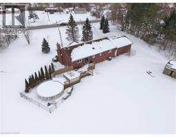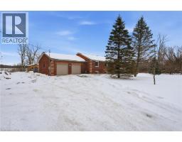 Discover peaceful country living in this all-brick, raised bungalow set on a private 1.24 acre lot surrounded by mature trees. Positioned well back from the road, the expansive driveway offers parking for 10+ vehicles - perfect for guests, trailers, or all your toys. Built with durable core slab construction, providing solid floors for the main-level, and open-concept living in the basement. Step inside through the spacious, welcoming foyer featuring dual closets and a beautiful open staircase that allows natural light to flow throughout both levels. The upper level showcases an updated kitchen with an oversized island, granite countertops, and seamless transition to the dining room with an eye-catching accent wall. The bright, spacious living room features custom built-ins framing an all-brick fireplace (not in use) and a large bay window. Three bedrooms and a 4-piece bathroom complete the upper level, with dual closets in the primary bedroom . The fully finished lower level is designed for entertaining with a built-in bar, gas fireplace, 3-piece bathroom, and flexible recreation space ideal for a playroom, home office, or future bedroom with convenient walk-up garage access and includes a utility/storage room with brand new furnace (Jan 2026). The 500+ sq ft garage comfortably fits two vehicles and includes a gas line already roughed in for a heater. Step outside into the spacious yard to an oversized back deck overlooking the above-ground pool (AS-IS) - perfect for relaxing or entertaining. Enjoy the peace and privacy of rural living while being just minutes from the downtown core of Dunnville. (id:46441)