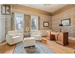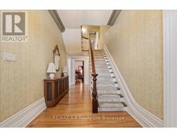 Located in one of Stratford's most sought-after neighbourhoods, this exceptional century home rests on a rare, nearly half-acre lot just moments from the downtown core. Built in 1867, this grand three-level, triple-brick residence seamlessly blends historic charm with thoughtful modern updates, offering remarkable space, character, and flexibility. From the moment you enter, soaring ceilings, exquisite woodwork, and rich original flooring set a tone of timeless elegance. The classic centre-hall plan is flanked by a formal dining room and an inviting living room, highlighted by a marble fireplace. A true showpiece of the home is the library/den, featuring a striking brick fireplace, wood-paneled wall, grass cloth, pocket door, and large stained glass windows- an ideal retreat for reading, working, or quiet reflection. A spacious family room addition enhances everyday living, complete with a gas fireplace and patio doors that open to a serene and private garden setting. With seven bedrooms, three full bathrooms, one half bath, main-floor laundry, kitchen, dining room, living room, parlour, family room, and both front and back staircases, the home offers exceptional space for family living and entertaining, with excellent potential for separate living quarters for extended family. Significant upgrades provide comfort and peace of mind, including updated double-hung windows that preserve the home's classic style, a fully updated electrical system, an upgraded boiler, and dual zoned central air conditioning on the main level. Step outside to an updated composite deck with wrought-iron railings overlooking lush gardens and a kidney-shaped pool, creating a private outdoor retreat. An attached garage offers direct access to a mudroom with a conveniently located full bathroom. A true Stratford landmark, this remarkable property offers a rare opportunity to own a beautifully preserved piece of history within walking distance of the city's vibrant downtown core. (id:46441)