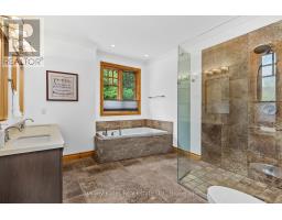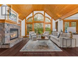 Craftsman-style bungalow with lower-level walkout, prominently situated on a quiet cul-de-sac, with views over the 9th hole of Deerhurst Highlands Golf Course. Surrounded by distinguished residences, this expansive property has been thoughtfully designed and meticulously cared for. Spanning nearly 3,000 square feet, this residence features three spacious bedrooms, each with its own full bathroom and generous closet space, to ensure maximum comfort for family or guests alike. The private, main floor primary suite is a dream escape featuring a 5pc ensuite with jacuzzi tub, heated floors, walk in closet and access to the screened Muskoka room. An open-concept floor plan enhances the homes functionality for both families or down sizers, highlighted by vaulted ceilings, gas fireplace and expansive floor-to-ceiling windows in the living room. The kitchen stands out with ample storage, built-in appliances (most new within the last year), and a large peninsula counter, making it a perfect space for culinary enthusiasts, entertaining and hosting large family gatherings. On the lower level, 2 additional bedroom suites are perfect for growing families centred by a generously sized family room with in-floor heating, gas fireplace, wet bar and walkout to the exceptionally private and level backyard. The screened Muskoka room and beautifully landscaped grounds with fire pit have been designed and created for enjoyment, and the double-car attached garage offers convenience and additional storage options and the driveway has been upgraded to chip seal. This executive bungalow is in a prime location with municipal water/sewer and presents an opportunity not to be missed for those seeking a refined lifestyle among the beauty of nature and the pristine fairways of a premier Muskoka golf course. (id:46441)
