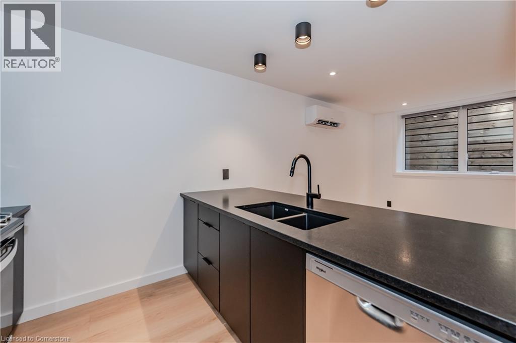 THE ONE that stands out from the rest! Welcome to The Spurline Unit at 63 Union St E in Waterloo. Live in this bright & beautiful 1 bedroom 1 bathroom unit in Uptown Waterloo! Not interested in living in a condo, but looking for an incredible rental in Uptown Waterloo? This premium unit is home to high-end finishes including wide plank luxury vinyl flooring, quartz countertops & a modern aesthetic throughout. This one-of-a-kind property features commercial-grade building materials & is the definition of unique boutique living. Enjoy two levels of living space - on the lower level is an open-concept living space which includes a sleek kitchen with a moody black-on-black aesthetic. This unit features stainless steel appliances including a dishwasher & the island offers countertop height seating. The living space is flooded with natural light & offers lots of room to live & play all the while still housing a cozy vibe. The main level features a spacious studio-style bedroom with an oversized closet, washer/dryer combination in-suite & a 3-pc bathroom. The large bathroom vanity offers plenty of storage and the all-tile and glass shower nods to a relaxing spa-like aesthetic. This unit has it's own private entrance, mailbox, hydro meter and respective heating and cooling. Custom roller shade window coverings are installed which means one less thing on your to-do list when you move in! Thrive in this desirable neighbourhood, despite having no parking this neighbourhood has excellent walkability, public transit nearby, plenty of parks & green spaces, the Iron Horse Trail & great proximity to WRHN Midtown Hospital (formerly Grand River Hospital). Revel in all of the diverse amenities offered in Uptown Waterloo including restaurants, shopping, grocery stores, boutique gyms, & aesthetic services. Union St is located in the heart of a true urban live-work-play atmosphere! A MUST SEE & A NOT TO BE MISSED property! (id:46441)