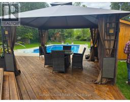 Welcome to this beautifully maintained 3-bedroom, 2 full bath home, ideally located just minutes from Kelso Beach and the marina. Featuring a charming stone and brick front with a welcoming front porch, this property offers incredible outdoor living with a large wood deck, gazebo, and a stunning fully fenced backyard. Enjoy summer days by the 36' x 18' heated pool, complete with a new liner (2024), new sand filter (2025), winter safety cover, and solar blanket. The professionally maintained pool area also includes a dedicated pool shed, while a separate garden shed adds convenience.Inside, the home boasts hardwood floors and California shutters throughout. The oversized family room features a striking stone gas fireplace, and the living room offers a second gas fireplace for added comfort. The spacious kitchen is a chefs dream, equipped with both gas and electric stoves, a large island with quartz countertops, and stainless steel appliances. The lower level includes a private office and a recently renovated full bathroom. Additional features include a 7-zone sprinkler system, serviced A/C and furnace (May 2025), carport, and a thoughtful layout designed for both relaxation and entertaining. (id:46441)