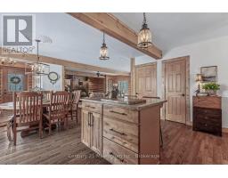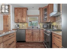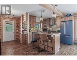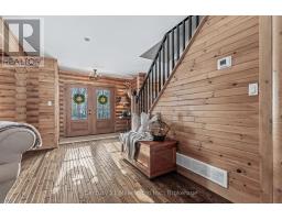 This stunning log home is nestled on the escarpment, offering seasonal water views of Colpoy's Bay, and breathtaking sunrises. With water access just a stone's throw away, this property is the perfect retreat for nature lovers and outdoor enthusiasts. Recent updates have transformed this home into a modern oasis. The main floor features new fiberglass, wood look, exterior doors, light fixtures and cafe appliances, creating a bright and inviting space for entertaining or relaxing. Step outside onto the wrap-around covered porch and take in the serene surroundings of the beautifully landscaped gardens. The entire upstairs has been renovated, including new LVP floors throughout, two new bathrooms, including the luxury Master Ensuite and a walk in closet with custom built ins. The detached garage offers versatility, with the option to use it as an entertainment area complete with a wood stove, or as a parking space for two cars. Additional storage sheds provide ample space for all your outdoor equipment and tools. Don't miss out on the opportunity to own this idyllic log home with all the modern conveniences you could ask for. (id:46441)