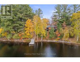 Nestled along the tranquil shores of Lake Waseosa, this 3-bedroom, 3-bathroom bungalow with a walkout offers 123 feet of water frontage and 2,679 sq. ft. of living space. With ideal southwest exposure, enjoy stunning sunsets and crystal-clear waters perfect for fishing and boating. The functional layout features large windows on the main level, filling the space with natural light. The kitchen and adjoining dining room, with a double-sided wood-burning fireplace, create a welcoming space for family gatherings. A three-season sunroom allows for outdoor enjoyment, while the living room walkout leads to a deck and seating area, ideal for summer evenings. The lower level includes a spacious recreation room with a wet bar, an office for remote work, a laundry room with a walkout to the side yard, and direct access to a generous patio. Just 15 minutes from downtown Huntsville, you'll have easy access to shops, dining, and essential services. With North Waseosa Lake Road directly off Highway 11 and maintained year-round, this lakeside retreat is easily accessible in all seasons. (id:46441)