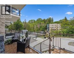 Welcome to luxury living in the heart of Elora! This stunning 1 Bedroom + Den, 2 Bathroom condo offers modern design, upscale finishes, and a FULLY FURNISHED interior—perfect for those seeking comfort and style. The bright open-concept layout features a sleek kitchen with high-end appliances, spacious living area, and a private balcony with views of the historic Elora Mill. The versatile den makes for the ideal home office or guest space, while the primary suite includes an ensuite and generous storage. Residents will enjoy access to exceptional building amenities, including a pool, fitness centre, concierge service, visitor parking, and more. With shops, dining, and nature trails just steps away, this prime location blends convenience and lifestyle seamlessly. Move-in ready and designed with every detail in mind, this rare offering provides the best of Elora’s charm with the ease of modern condominium living. (id:46441)