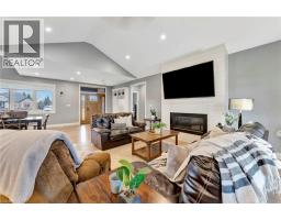 Set on nearly a full acre in a peaceful, upscale neighborhood, this stunning all-brick bungalow offers the perfect blend of luxury, comfort, and space. From the moment you arrive, the triple-car garage and oversized driveway set the tone for the elegance that continues inside. Step Through the front door into a grand open-concept living area highlighted by soaring cathedral ceilings, engineered hardwood flooring, and a Striking shiplap and tile gas fireplace. The chef-inspired kitchen is the heart of the home, featuring quartz countertops, high-end appliances, and stylish lighting — ideal for entertaining or enjoying family dinners. The spacious primary suite is a true retreat, complete with a luxurious five- piece ensuite and an impressive walk-in closet. Every detail has been thoughtfully designed to provide both function and sophistication. The lower level, filled with natural light, is ready for your finishing touches — with a rough-in bathroom and central mechanical layout, it offers the potential to nearly double your living space. If you’ve been searching for a home that combines quiet small-town living with refined style and modern comfort, this exceptional bungalow is a must-see. (id:46441)