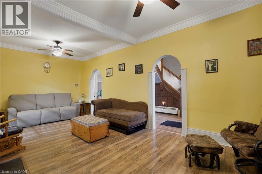 This stately 2.5-storey home is a true gem, offering both timeless charm and modern comfort. Its classic architecture is accentuated by a stunning covered wraparound front porch, perfect for relaxing while enjoying the relaxing view of the front yard. The landscaping is meticulously curated, with lush greenery, vibrant flower beds, and towering trees that enhance the home's curb appeal. Situated close to the heart of downtown Hagersville, this home enjoys a prime location that provides easy access to all the conveniences of small-town life, while still offering the serenity and privacy of a charming residential area. The exterior boasts elegant features such as detailed woodwork, classic red brick accents, and large, inviting windows that allow natural light to pour into the spacious interiors. The half-storey of this home is truly unique, offering a versatile loft space that could serve multiple purposes. Whether you dream of creating an inspiring art studio, a peaceful reading nook, or a private getaway for an unruly teenager, this area offers endless possibilities. Inside, the home continues to impress with just over 2,000 square feet of living space, its blend of traditional design and contemporary comforts. Spacious living areas, elegant finishes, and thoughtfully designed rooms create a welcoming atmosphere throughout. This home offers the perfect balance of charm, character, and functionality, making it a standout property in one of Hagersville's most desirable locations. Whether you're relaxing on the porch, retreating to the loft, or exploring the vibrant downtown just minutes away, this home promises a lifestyle of both comfort and convenience. (id:46441)