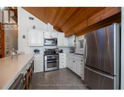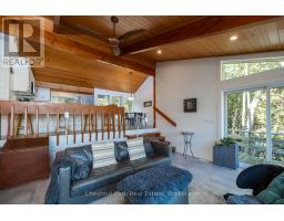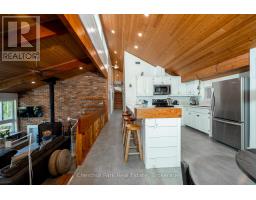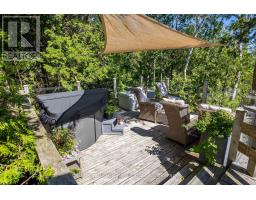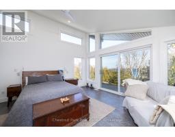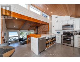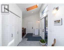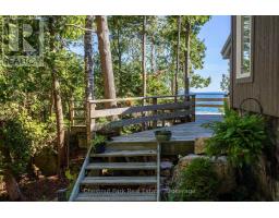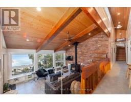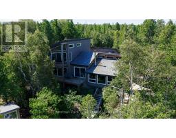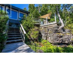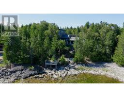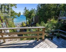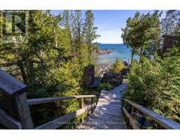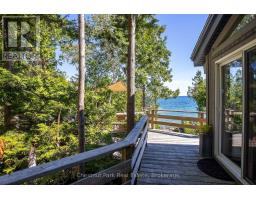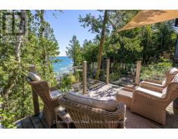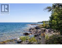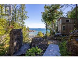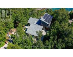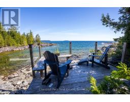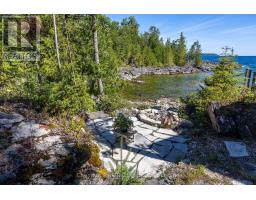 Welcome to your private Georgian Bay retreat in the heart of Tobermory-where contemporary design meets comfort and breathtaking natural beauty. Set on a rare protected cove with inspiring views toward Flowerpot and Bear's Rump Island, this extensively renovated waterfront home offers exceptional privacy just a short walk to the village, shops, and restaurants. Reimagined in 2019 with a complete down-to-the-studs extensive renovation and thoughtful addition, this 3+1 bedroom, 2-bath home was designed for energy efficiency. A 7.6kW solar system with net metering, SolarEdge inverter, and Level 2 EV charger pairs with a Zuba air-source heat pump for near net-zero living. Inside, warm modern finishes include ready-pine ceilings, custom Douglas fir stairs, and expansive windows framing the water. Durable concrete-effect flooring runs throughout, complemented by Italian porcelain tile and in-floor heat in the primary bath. A Blaze King Chinook wood stove adds efficiency and ambiance. All major systems were also updated in 2019, including plumbing, electrical, septic, windows, roofing (addition), and a 3-stage water purification system. Additional features include a custom office with built-ins, automatic closet lighting, and a heated, insulated crawl space. Outdoors, enjoy all-cedar decks, luxury hot tub, a waterfront platform, and beautifully landscaped stone patios (2023) with firepit and raised garden beds. The large single-car garage includes a garden prep/sink area. A charming two-level cedar bunkie at the water's edge (2017) provides extra guest space ( up to 4 people) and stunning views over Georgian Bay. Surrounded by nature trails and hiking, yet close to the harbour village, this property offers the perfect balance of privacy, efficiency, and waterfront living. (id:46441)