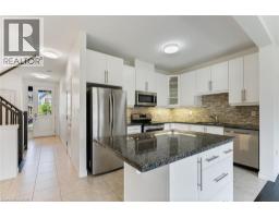 Executive End Unit townhome in Ancaster! This spacious home offers a bright open-concept layout with oversized windows and plenty of natural light throughout. The main level features a modern kitchen with granite countertops, brand new Fridge and Stove, a large island, and hardwood floors, all complemented by soaring 9 ft ceilings. Upstairs, you'll find 3 bedrooms, including a primary suite with ensuite bath, plus the convenience of second-floor laundry. Tucked away in a quiet and family-friendly neighborhood, just minutes from schools, shopping, restaurants, Hamilton Golf & Country Club, Hwy 403, & transit to McMaster & Redeemer Universities. Note: Long driveway Parking for 2 cars + the Garage.(total 3 parking spaces) Fully fenced spacious back yard. (id:46441)