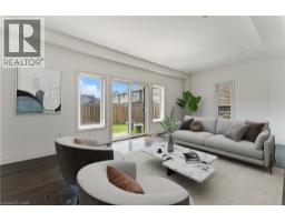 Executive End Unit townhome in Ancaster! This spacious home offers a bright open-concept layout with oversized windows and plenty of natural light throughout. The main level features a modern kitchen with granite countertops, brand new Fridge and Stove, a large island, and hardwood floors, all complemented by soaring 9 ft ceilings. Upstairs, you'll find 3 bedrooms, including a primary suite with ensuite bath, plus the convenience of second-floor laundry. Tucked away in a quiet and family-friendly neighborhood, just minutes from schools, shopping, restaurants, Hamilton Golf & Country Club, Hwy 403, & transit to McMaster & Redeemer Universities. Note: Long driveway Parking for 2 cars + the Garage.(total 3 parking spaces) Fully fenced spacious back yard. (id:46441)