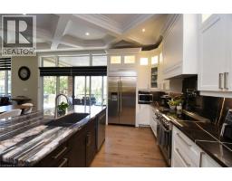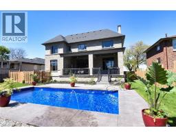 Stunning custom home on Hamilton's Mountain Brow with panoramic city & lake view from two levels! Features 11' coffered ceilings with crown moulding, private elevator, main floor bedroom with ensuite, powder room & dog wash. Upper-level family room with fireplace opens to a deck with spectular views. Backyard oasis includes saltwater pool, pool shed with remote shutter, outdoor fireplace & 2-piece bath. Three bedrooms upstairs with ensuites. Basement includes a 2-bed executive suite with separate laundry, heat & A/C. Parking for 8+ cars, 3-garage and 2 tankless water heaters. Sprinkler system for the grass to make your life easier. A rare luxury offering! (id:46441)