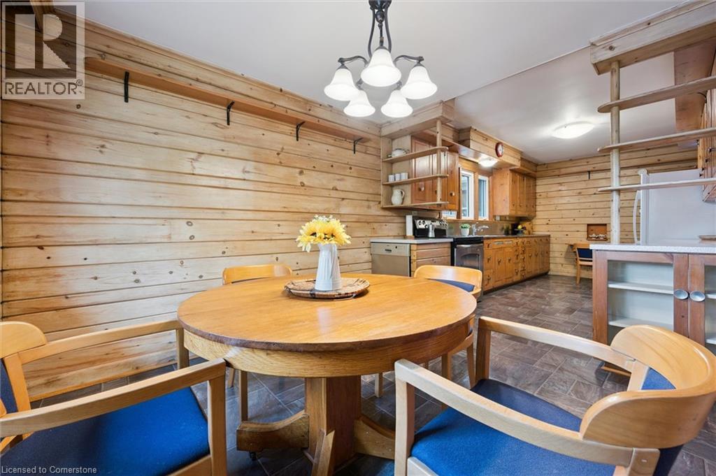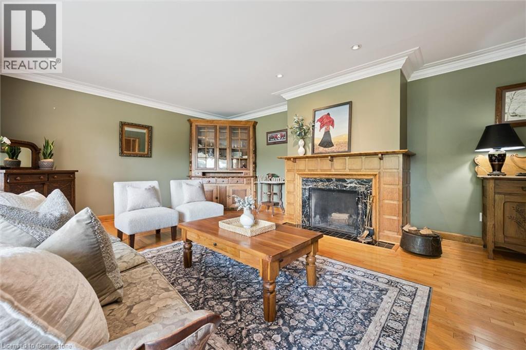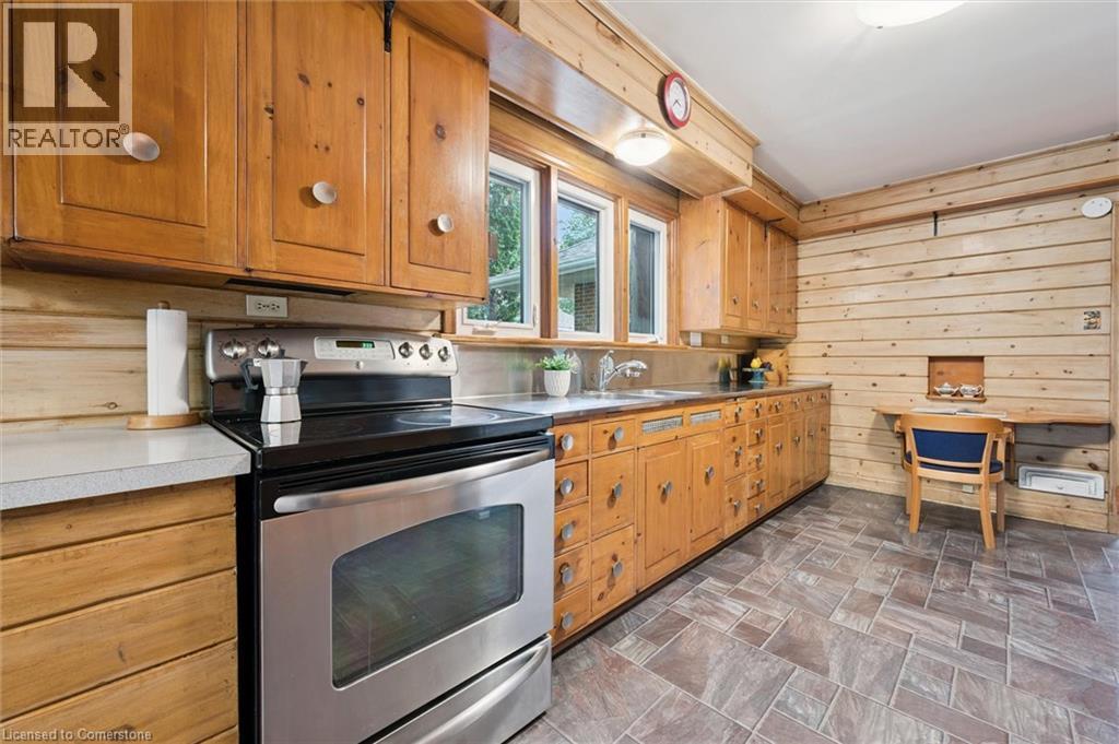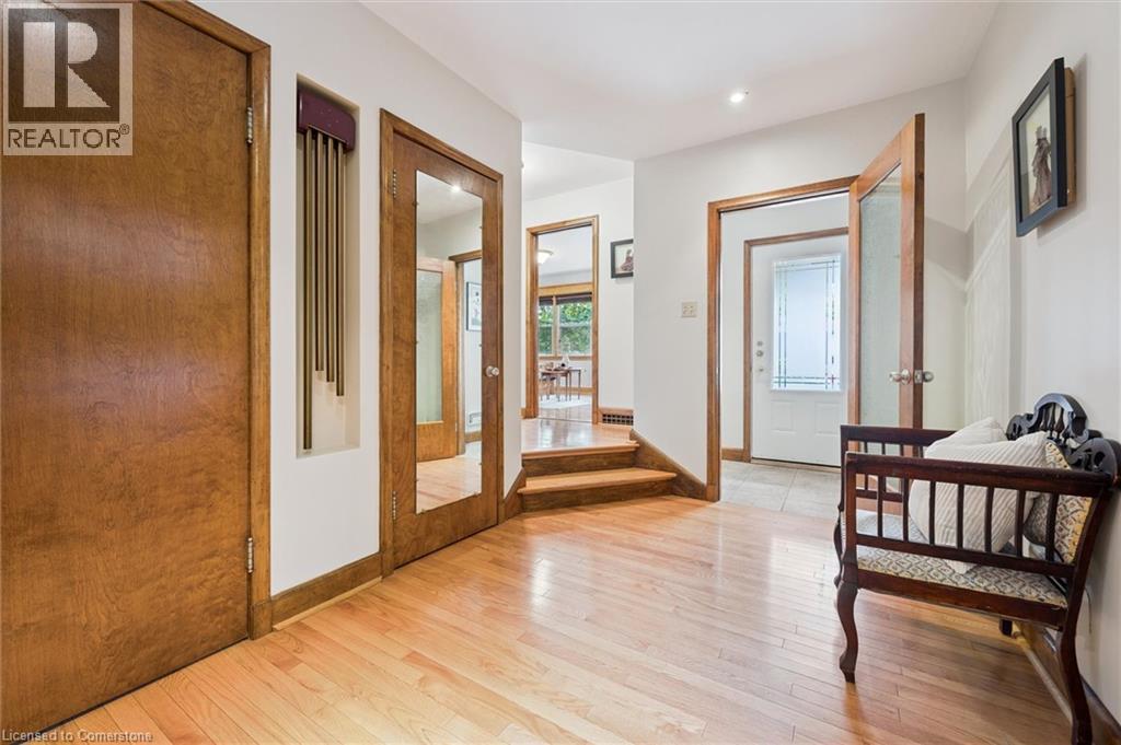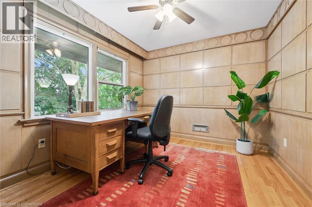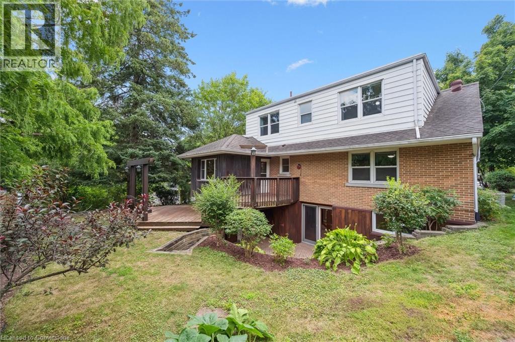 Welcome home to 688 Rockway Drive, where timeless charm meets a beautiful and peaceful setting. A landscaped front yard, flagstone walkway and patio lead you into the foyer of this brick 2500+sf, 3+ bedroom, 3-bath home bursting with character and craftsmanship. The impressive great room features a wood-burning fireplace with oak and marble detail, a large picture window, and plenty of space for both living and dining. The kitchen feels instantly inviting, with warm wood cabinetry and a bright dinette that walks out to a multi-tiered deck overlooking the yard backing directly onto Rockway Gardens. The main floor further hosts a spacious primary bedroom, a large main bathroom, a wood-panelled office that ties beautifully into the fireplace detail, and a versatile family room for flexible living. A great bonus to offset monthly expenses are the owned solar panels generating approx $4,000 annually. Carpet-free (except for the stairs) and featuring mostly hardwood floors throughout the main and upper levels, this home is filled with natural light from many large windows. Upstairs, you’ll find two generous bedrooms, a full bath, extra closets, a large storage space along the front of the home, and a handy laundry chute accessible from both levels. The finished lower level offers a walkout to a private patio and has been professionally designed as a 1–2 bedroom in-law suite. Additionally this level provides multiple storage rooms and a large utility room with a workshop area. A single-car garage provides inside access and another storage room off the garage. Updates include furnace (2021), A/C (2016), and many windows throughout. Set just up the street from Rockway Golf Course’s clubhouse and framed by the beauty of Rockway Gardens, this home feels like an escape from the city — yet close to all amenities and easy highway access. Lovingly maintained by the same owners for 35 years, this must see home presents an incredible opportunity in a truly special location. (id:46441)
