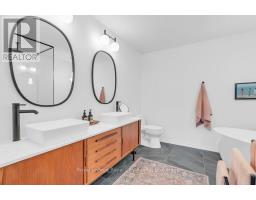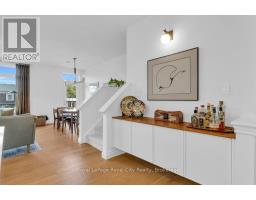 $457 MonthlyThis minimalist mid-century inspired modern home in the highly sought-after Stewart Mill Townes on Cardigan Street is design-magazine ready. Perfectly positioned between Exhibition Park and Downtown Guelph, with Goldie Mill and the Guelph Youth Music Centre just across the street, it is the ideal blend of urban convenience and serenity. This 2,000 sq. ft. end unit with a two-car garage (parking for four) and access to secluded, condo-maintained gardens has been thoughtfully reimagined over the past four years. Every detail has been considered, from smart wall placements that create multi-purpose spaces, to built-in storage that maximizes efficiency. The Hayes Custom Woodworking kitchen features elegant slim-shaker cabinetry, a stunning penny tile backsplash, and clever design that makes it as practical as it is beautiful. The custom-built living room fireplace with a striking teak mantel, creates a warm, cohesive main floor that invites gathering and relaxation. A main-floor office provides the perfect space for remote work, a TV lounge, or a guest bedroom. Upstairs, the second bedroom features three large windows and an updated ensuite. A smart partition creates additional functional space, perfect for a hobby nook, wellness area, or small office. If desired, this space could easily be reconfigured to accommodate a third bedroom. The primary suite is a stunning retreat where, again, beauty meets function. A custom privacy wall defines a flexible space ideal for a dressing room, home office, or cozy reading corner. The five-piece fully updated ensuite features a vintage teak vanity and a timeless design with bold, tile detailing. Storage is abundant throughout, including a loft inside the home and additional storage above the garage for seasonal items. This rare, one-of-a-kind home in Stewart Mill Townes blends intentional design, comfort, and modern living in one of Guelph's most desirable neighbourhoods. (id:46441)