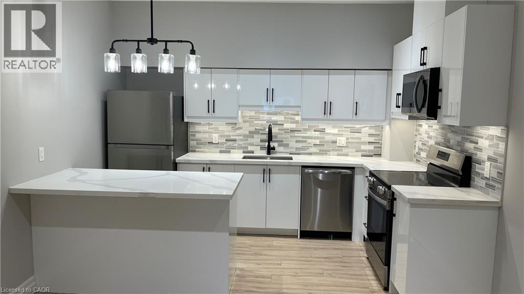 Stunning one bedroom apartment located steps from the scenic Welland Canal! This thoroughly updated unit features a chef's kitchen equipped with quartz countertops, stylish light fixtures, a sleek backsplash, and stainless steel appliances including a dishwasher. The well lit bedroom and living area offer luxurious plank flooring. Bathroom boasts a beautiful vanity. Confidently call this modernized space home! Welland Hospital, Niagara College's Welland Campus, and highway access are all just minutes from the building. Tenant to pay heat & hydro. (id:46441)