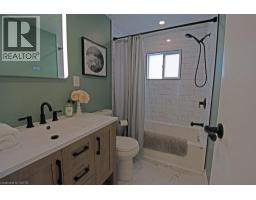 Welcome home! This recently renovated back split with single garage is move-in ready and tucked away in a sought-after, family-friendly neighborhood close to schools, parks, rec centers, shopping, Brantwood Farm Market and quick highway access. 1257 finished sq ft of space plus 361 sq ft in the crawl space. Step inside to discover new flooring and fresh paint throughout, creating a bright, spacious, and modern feel. The front foyer opens into a stunning new kitchen (2023), complete with quartz countertops, high-end appliances, and walkout access to the fully fenced backyard. A generous living and dining room makes entertaining a breeze. Upstairs, you’ll find three comfortable bedrooms and a beautifully updated contemporary 4-piece bath. The lower level features a large family room with fireplace, a handy 2-piece bath, and potential for a 4th bedroom or home office. The backyard is designed for year-round fun and relaxation, offering a deck, fire pit, and hot tub with privacy gazebo. Major updates include furnace, A/C, tankless hot water heater, and water softener (2020). Storage is not a problem with a huge crawl space put everything away! This home checks all the boxes- style, comfort, and convenience. (id:46441)