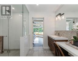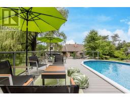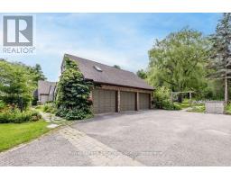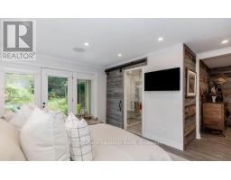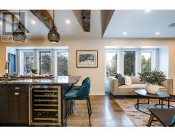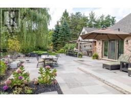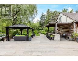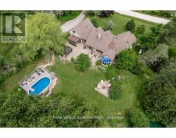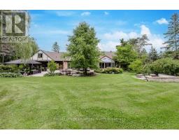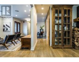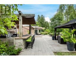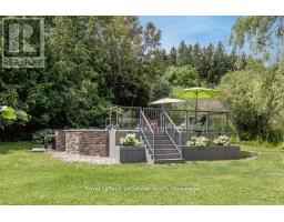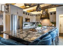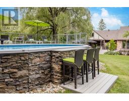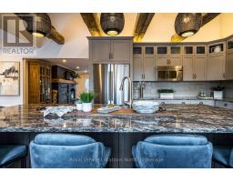 Discover your own private retreat in this 4,297 sqft resort-style home set on 1.84 acres of beautifully landscaped grounds. With a 3-car garage, 12 perennial gardens, irrigation, custom lighting, inviting gathering areas + a private forest with direct trail access, this property is designed for luxury living. The expansive stone patio is an entertainers dream, featuring a gazebo, water feature, outdoor BBQ kitchen, stone slab bar with barn beam accents, ShadeFX Sunbrella retractable canopy & a stunning barn board wall. Relax by the propane fire bowl, in the heated salt-water pool with composite decking, or under the outdoor cedar shower. Inside, refinished hardwood floors, crown molding & exposed barn beams create a warm, timeless feel. A built-in Sonos sound system with 10 zones & 88 pot lights set the perfect mood. The chefs kitchen boasts a 4.5' x 10.1' Cambria stone island, Creemore beer taps, bar fridge & stainless steel appliances. The formal dining & family rooms each offer wood-burning fireplaces & patio walkouts, ideal for gatherings. The main floor features 3 unique bedrooms, including a spa-style bath with a walk-in glass shower, floating tub, double vanities & a custom feature wall. The master suite includes a walk-in closet, private patio, ensuite with walk-in shower & double sinks, plus direct access to a 4-season solarium for peaceful relaxation. The main floor laundry/mudroom offers patio access, a powder room & a deluxe 6-person sauna. A custom staircase leads to a loft with 2 bright bedrooms, large windows & ductless HVAC. The finished lower level adds a spacious rec room, 3-piece bath, storage & room for a gym or bedroom. Every element has been thoughtfully curated, making this home a true luxury escape built for both relaxation & entertaining. (id:46441)