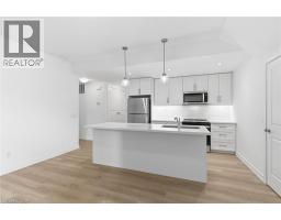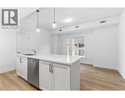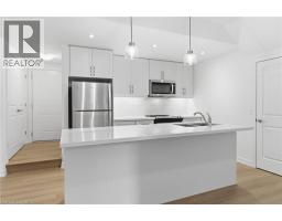 Newly built and never lived in! This main-floor townhome is ideally located just minutes from downtown Waterdown, shopping and restaurants. This modern, upgraded one-bedroom home is completely carpet-free, featuring an open-concept layout and a stylish kitchen with beautiful quartz counters, an island, pendant and valance lighting and vinyl flooring throughout. The sun-filled living room offers a bright and welcoming space, while the bedroom provides good closet space. Thoughtful design elements add convenient storage nooks, ensuring no space goes to waste. Enjoy the ease of in-suite laundry and a four-piece bathroom that completes this fantastic living space. The garage with inside entry means you’ll never have to deal with the weather. The area offers hiking trails, excellent access to highways and transit and close proximity to the Aldershot GO Station. Don’t be TOO LATE*! *REG TM. RSA. (id:46441)