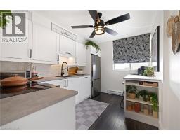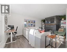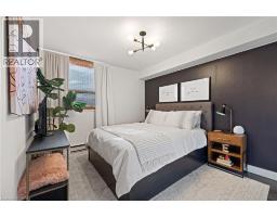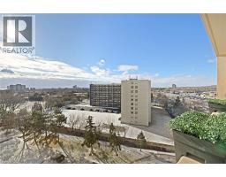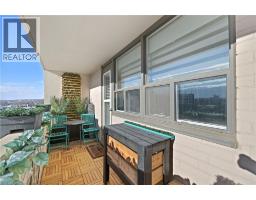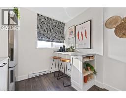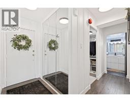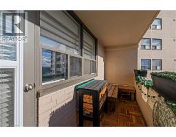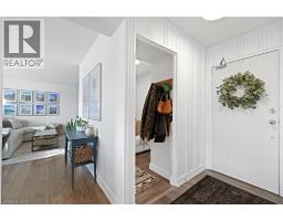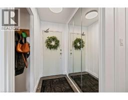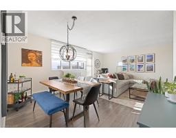 Welcome to the Empress, a well-managed condominium with 24 hour concierge, steps from Burlington Centre, Farm Boy, Denningers, public transit, parks, and quick highway access. This beautifully renovated 1+ Den, 2 bath suite boasts outstanding value and exceptional livability. The unit features newer flooring throughout, upgraded lighting, and a luxurious main bathroom. The sleek, renovated kitchen includes a custom built-in pantry, modern finishes, island and thoughtful storage solutions that maximize every inch. The spacious living room features a comfortable layout with a walkout to the private balcony, while the separate den is ideal for an office or quiet reading space. The dining area easily accommodates a full-sized dining table, making entertaining effortless. The primary bedroom includes a rare walk-in closet and convenient two-piece ensuite. Additional features include a full laundry room, PAX wardrobe system in the front hall closet, and custom built-in storage throughout the suite creating a highly functional and organized home. The Empress provides excellent amenities, including a renovated party room & gym, outdoor pool, and underground parking. Beautifully updated, move-in ready, and located in one of Burlington's most convenient neighbourhoods-this condo is a must-see. (id:46441)