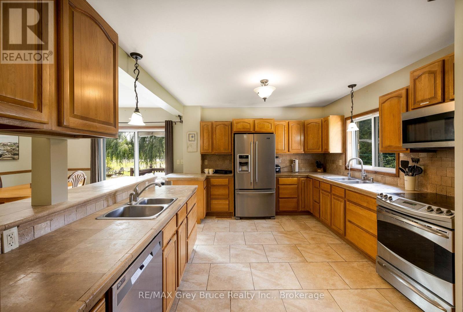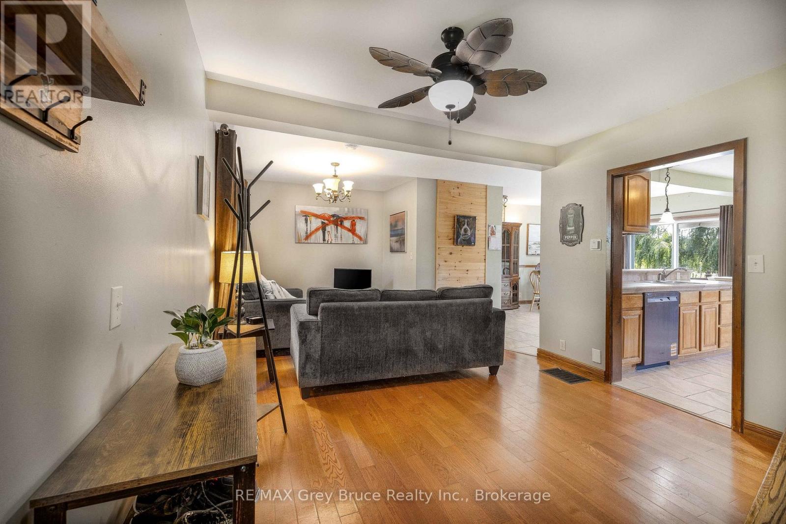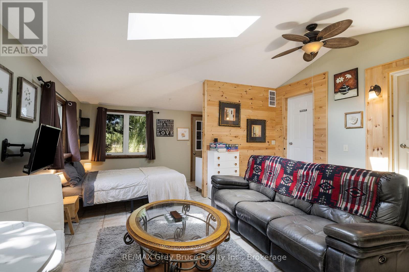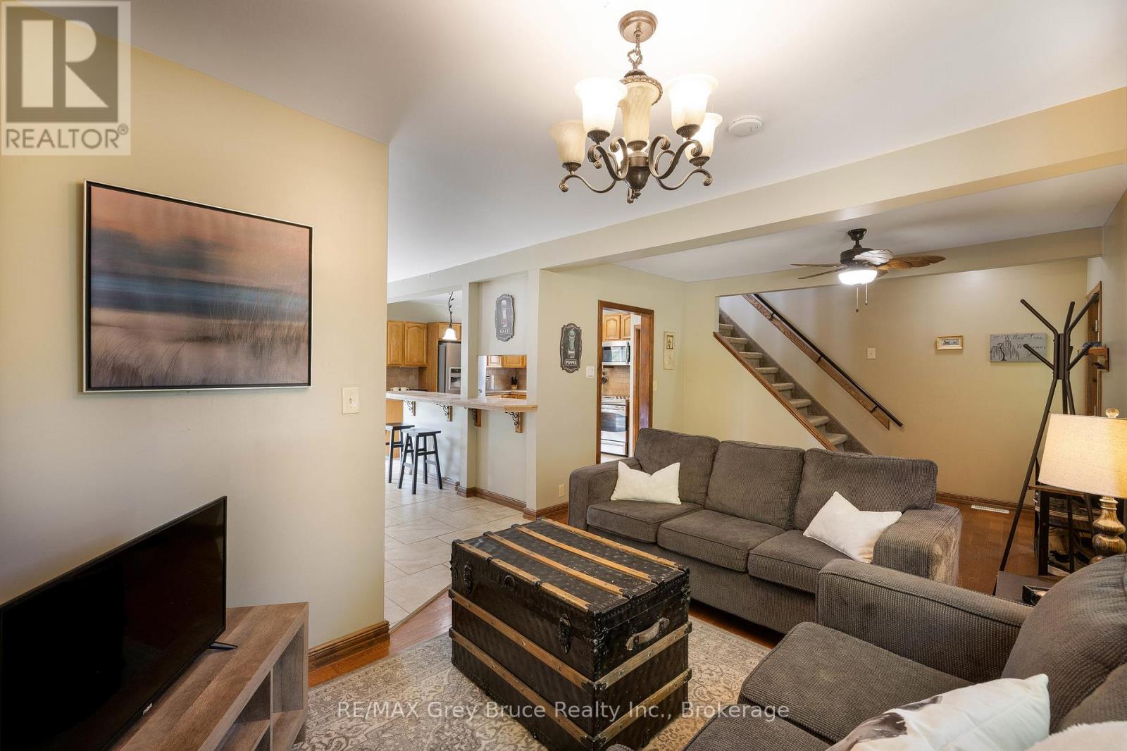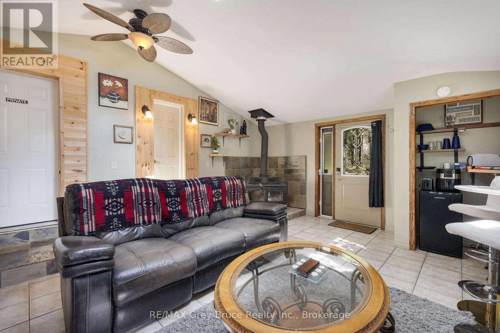 FAMILY HOME, BED & BREAKFAST, HOME BASED BUSINESS or RECREATIONAL GETAWAY! This versatile property offers incredible potential for a variety of uses, whether you're looking for a welcoming family home, a cozy bed & breakfast, a base for your home-based business, or a peaceful country getaway. Ideally located on Highway 6 with commercial zoning, the property provides excellent visibility for those exploring business opportunities close to town. Set on 1.5 acres, there's ample space for future development or simply enjoying the great outdoors. The property includes a dog run, firepit area, and a majestic willow tree, creating a serene setting for relaxation or play. A large cleared area offers endless possibilitiesfrom a children's play zone to a thriving vegetable garden. Mature apple trees, gardens, and exterior storage enhance the charm and practicality of this unique property. Inside the main home, you are afforded 3 bedrooms plus a den, and a 4Pc bath for comfortable living. The spacious kitchen features tile flooring, breakfast bar and SS appliances, with access to a mudroom. The open concept layout is perfect for entertaining. The dining room features a walkout to the deck, as well as access to the in-law suite. The second level bedrooms are spacious, each with closet space. A 4Pc bathroom offers a jacuzzi tub to relax after a long day. The Den is perfect for an in-home office, library or TV room with access to the loft bedroom. The in-law suite is a flexible space, and could be used as an additional family room, workshop space or kept as it is offering guests / family their own space. Featuring its own entry, 2Pc bathroom plus a separate shower/sink, and a cozy woodstove. Minutes from Tobermory and local amenities, this property blends the tranquility of country living with the convenience of nearby services. Whether you're starting a new chapter or growing your current lifestyle, this property offers the space, zoning, and charm to make it your own. (id:46441)