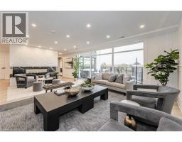 $784.39 MonthlyExperience refined condo living at Edgewater Condominium, ideally located along the Eramosa River in the heart of Downtown Guelph. Unit 608 is a well-appointed 2-bedroom, 2-bath suite offering two private balconies and a functional open-concept layout with approx. 1260 square feet of living space. Engineered hardwood flooring extends throughout the living areas and bedrooms. The kitchen features a waterfall island, stone countertops, modern backsplash, and premium appliances, opening to the living and dining areas highlighted by a floor-to-ceiling tiled fireplace and walk-out to a balcony with city views. The primary bedroom includes a walk-in closet, private balcony, and a 5-piece ensuite with freestanding tub, glass shower, and heated floors. A second bedroom, 3-piece bath, and in-suite laundry complete the suite. Large windows provide abundant natural light and neutral finishes throughout. Includes one underground parking space, one storage locker, and access to building amenities including a library, party and media rooms, fitness centre, and guest suites. Steps to downtown amenities, riverfront trails, and GO/VIA Rail access. (id:46441)