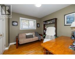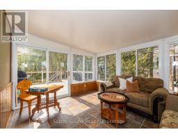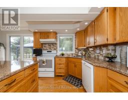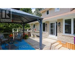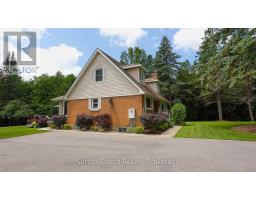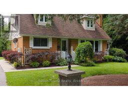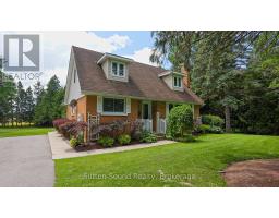 Welcome to this beautifully maintained Cape Cod-style brick home, nestled on a lush and private 1.35-acre lot just minutes from Owen Sound. Offering the perfect blend of timeless character and modern updates, this 4-bedroom, 2-bath residence is filled with natural light and features gleaming hardwood floors throughout. The updated kitchen is the heart of the home, showcasing high-quality Hanover cabinetry, a functional center island, and plenty of space for family gatherings and entertaining. A cozy gas fireplace (2009, serviced annually) adds warmth to the main living area, while a bright 4-season sunroom offers year-round enjoyment. Retreat to the spacious, spa-like main bathroom complete with a luxurious Jacuzzi tub. Step outside to relax or entertain on two expansive decks overlooking the peaceful, landscaped backyard. The walk-out basement provides ample storage and future development potential. A 12x20 storage shed with garage door offers easy access for tools and equipment, while the detached heated garage over 1,000 sq ft features two 10-ft-wide garage doors and a versatile multipurpose room with its own heating and air conditioning. Whether you're looking for a workshop, home office, man cave, or She-shed, the options are endless. Formerly used for a successful home-based business, the space is flexible and ready for your vision (with proper approvals).Additional highlights include 400 amp service (200 amp to both the house and garage), a paved driveway, and meticulously landscaped grounds. This exceptional property offers privacy, functionality, and convenience all within close proximity to town amenities. (id:46441)