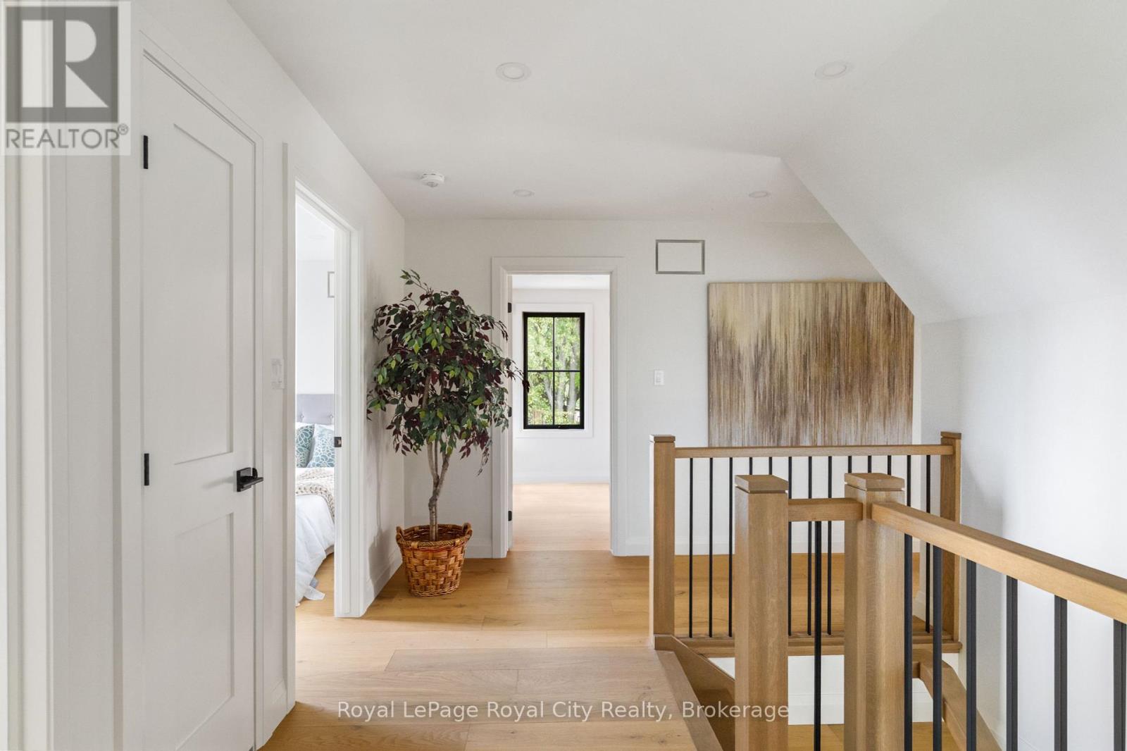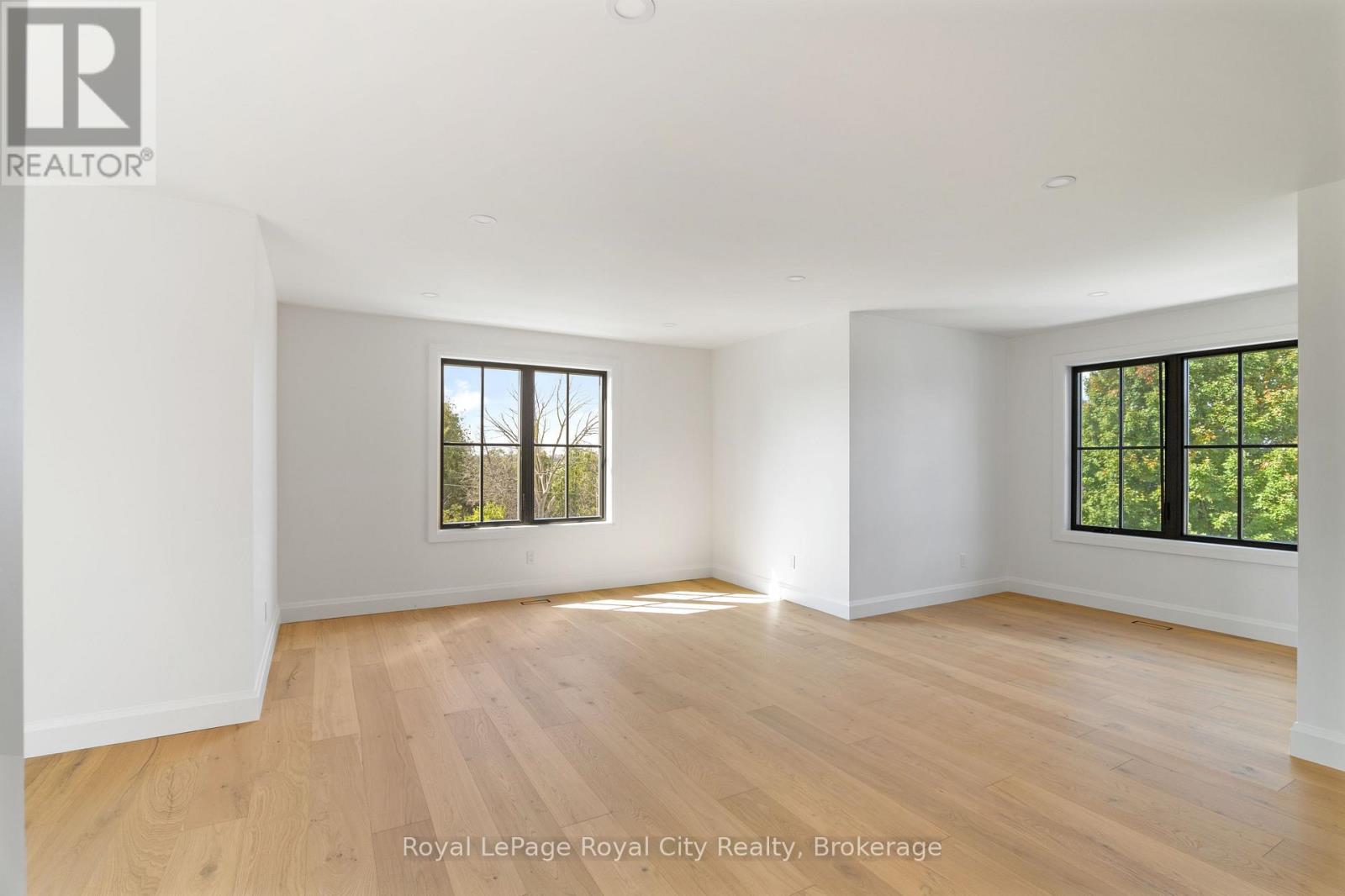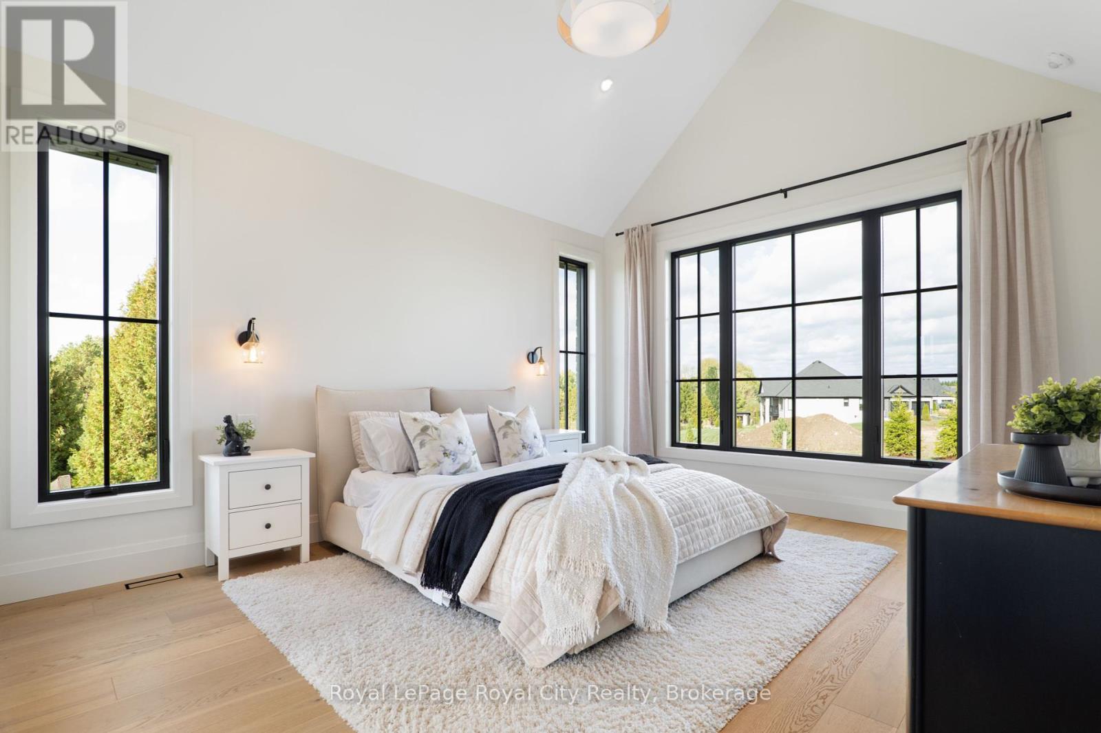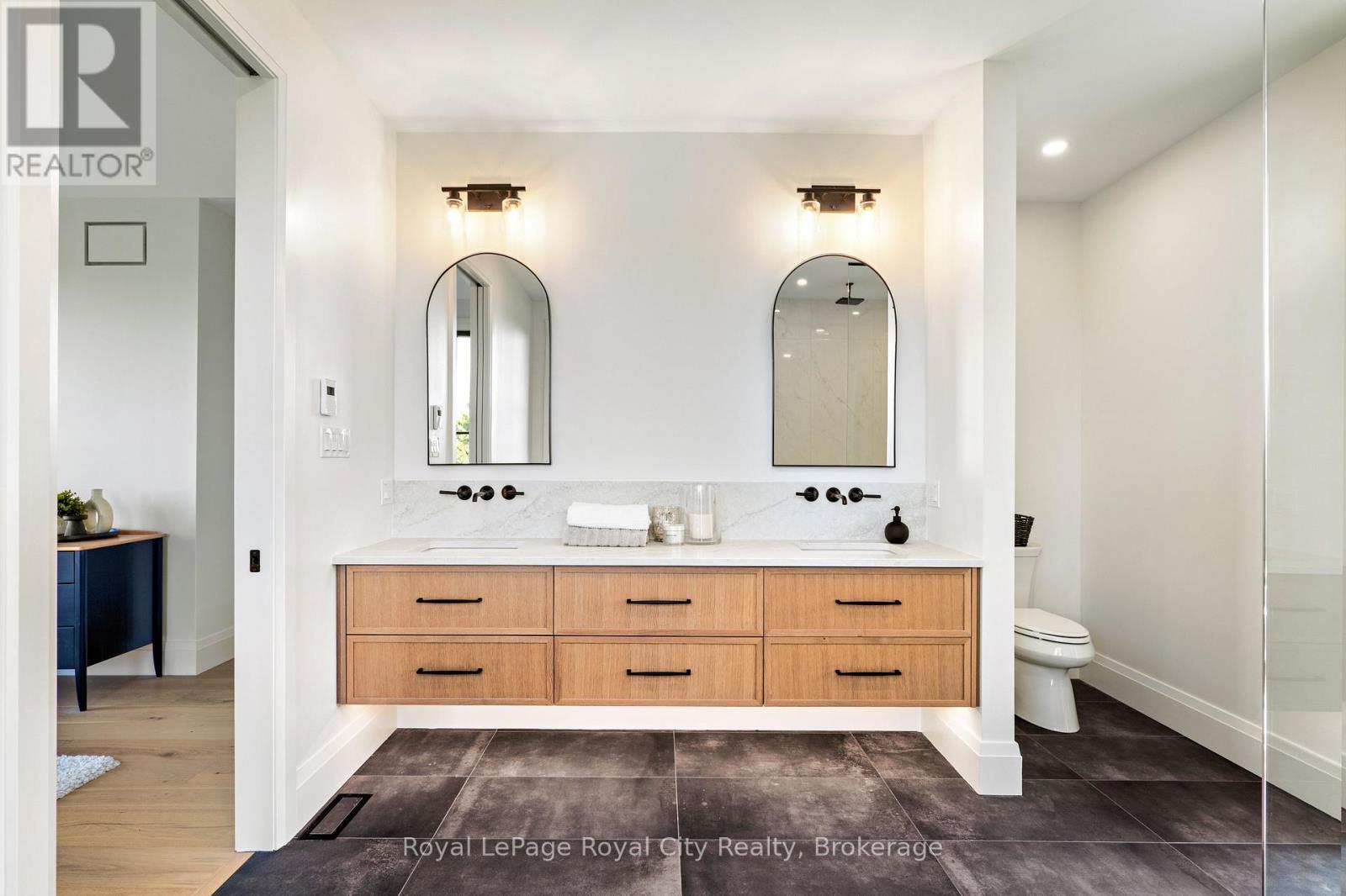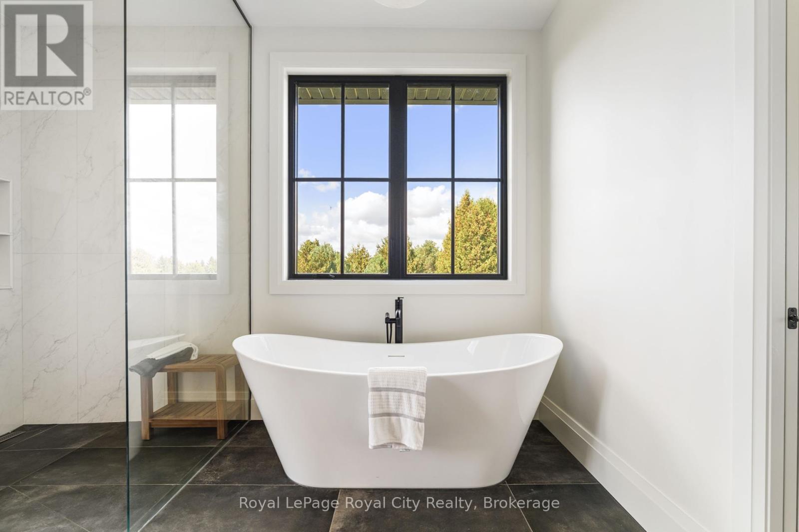 A hidden gem in Wellington County, just moments from Guelph, Elora, and Fergus. Here, you'll find yourself surrounded by the beauty of the rural landscape. This custom-crafted estate is a true statement; thoughtfully designed and intentionally created with entertaining in mind. At the heart of the home, the kitchen stuns with warm wood accents, gold fixtures, and a subway tile backsplash. A secondary butlers kitchen enhances the culinary experience, bringing both versatility and sophistication to every gathering. The living room is curated for elegant living, showcasing oversized glass sliding doors framed in sharp black trim and a striking floor-to-ceiling fireplace. Additional highlights include a luxurious main-floor primary wing with spa-inspired 5-pc ensuite and walk-in closet. Upstairs, find three spacious bedrooms, one of which offers a stunning 3-pc ensuite with beautiful gold finishes and earthy tones. The focal point of this storey is the sun engulfed bonus room perfect for a secondary living area or multi-purpose space. Just a stones throw away, step down to the Shand Dam Trail, launch your canoe or kayak into the Grand River for remarkable fishing and paddling activities. Nearly as central to the Shand Trail is the Pilkinton Overlook or the Wilson Flats, where one can go to embrace the peaceful sounds of nature alongside the solitude of the river. This home is a true sanctuary. Embrace the quiet life in the heart of Inverhaugh. (id:46441)