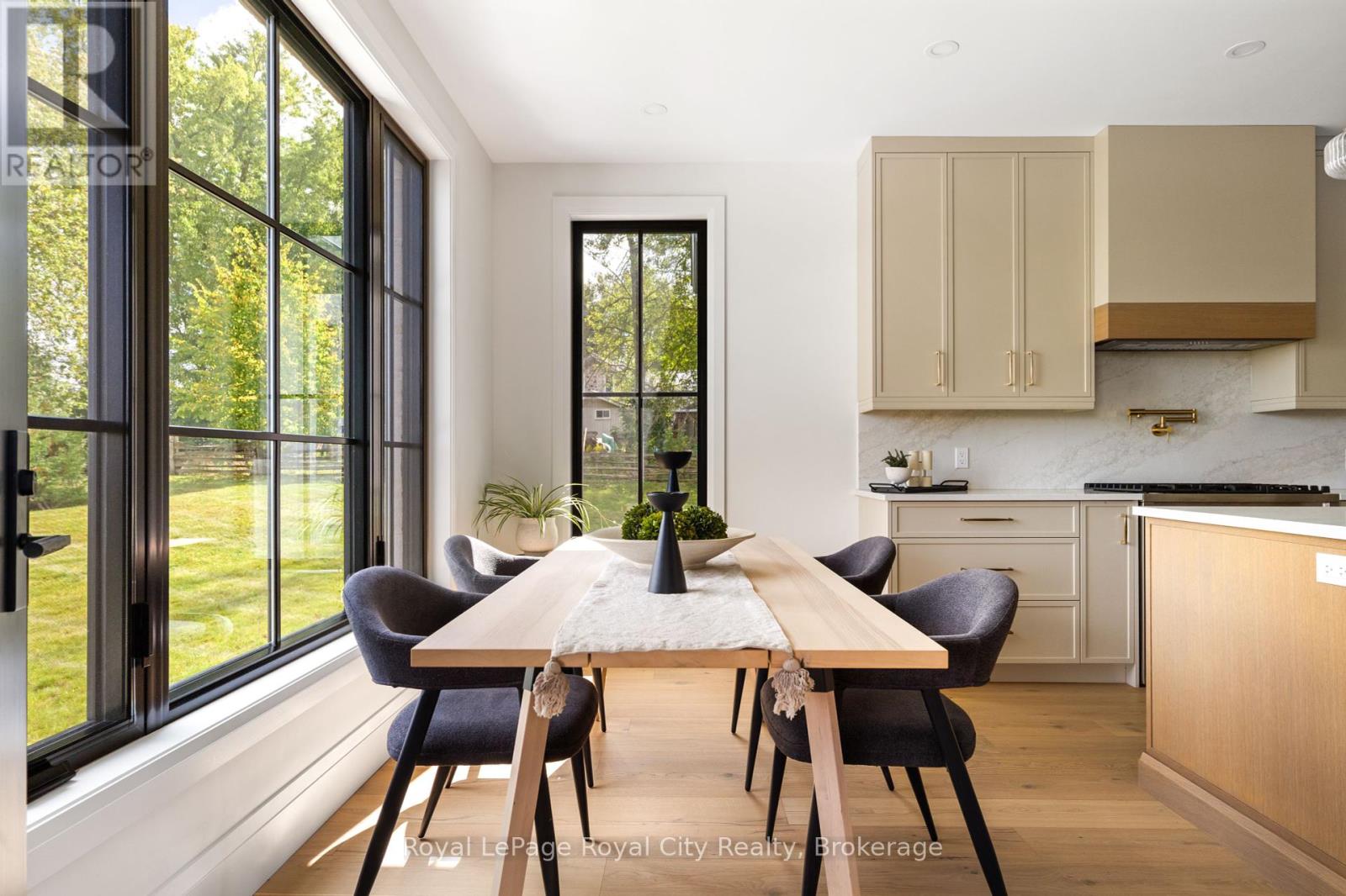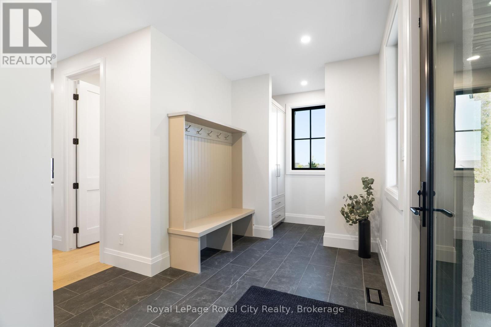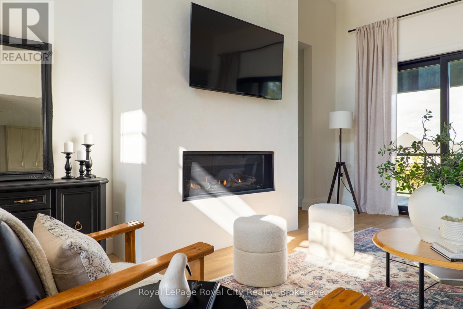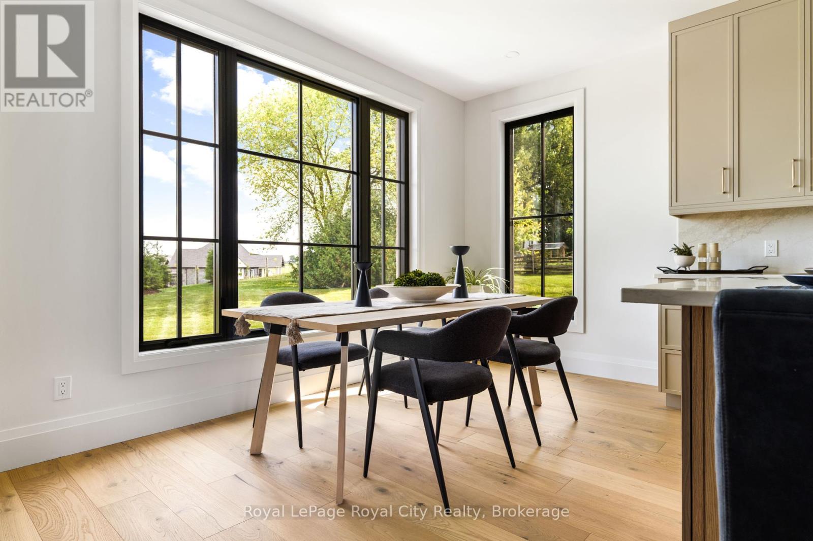 A hidden gem in Wellington County, just moments from Guelph, Elora, and Fergus. Here, you'll find yourself surrounded by the beauty of the rural landscape. This custom-crafted estate is a true statement; thoughtfully designed and intentionally created with entertaining in mind. At the heart of the home, the kitchen stuns with warm wood accents, gold fixtures, and a subway tile backsplash. A secondary butlers kitchen enhances the culinary experience, bringing both versatility and sophistication to every gathering. The living room is curated for elegant living, showcasing oversized glass sliding doors framed in sharp black trim and a striking floor-to-ceiling fireplace. Additional highlights include a luxurious main-floor primary wing with spa-inspired 5-pc ensuite and walk-in closet. Upstairs, find three spacious bedrooms, one of which offers a stunning 3-pc ensuite with beautiful gold finishes and earthy tones. The focal point of this storey is the sun engulfed bonus room perfect for a secondary living area or multi-purpose space. Just a stones throw away, step down to the Shand Dam Trail, launch your canoe or kayak into the Grand River for remarkable fishing and paddling activities. Nearly as central to the Shand Trail is the Pilkinton Overlook or the Wilson Flats, where one can go to embrace the peaceful sounds of nature alongside the solitude of the river. This home is a true sanctuary. Embrace the quiet life in the heart of Inverhaugh. (id:46441)