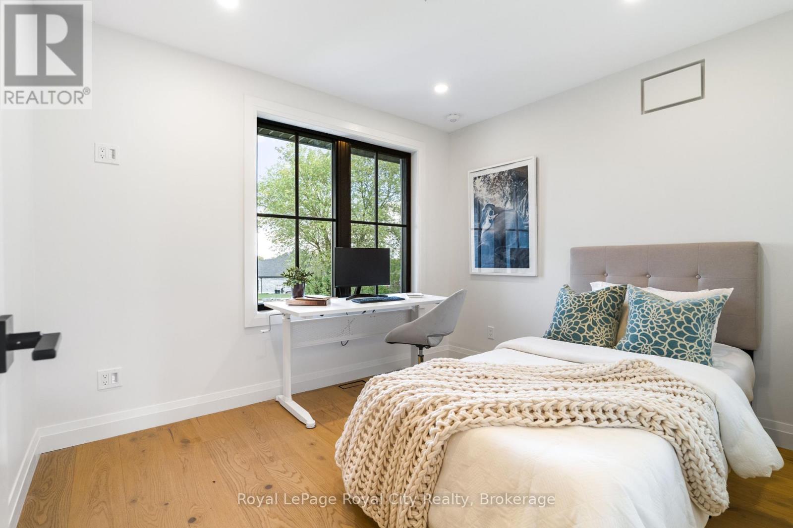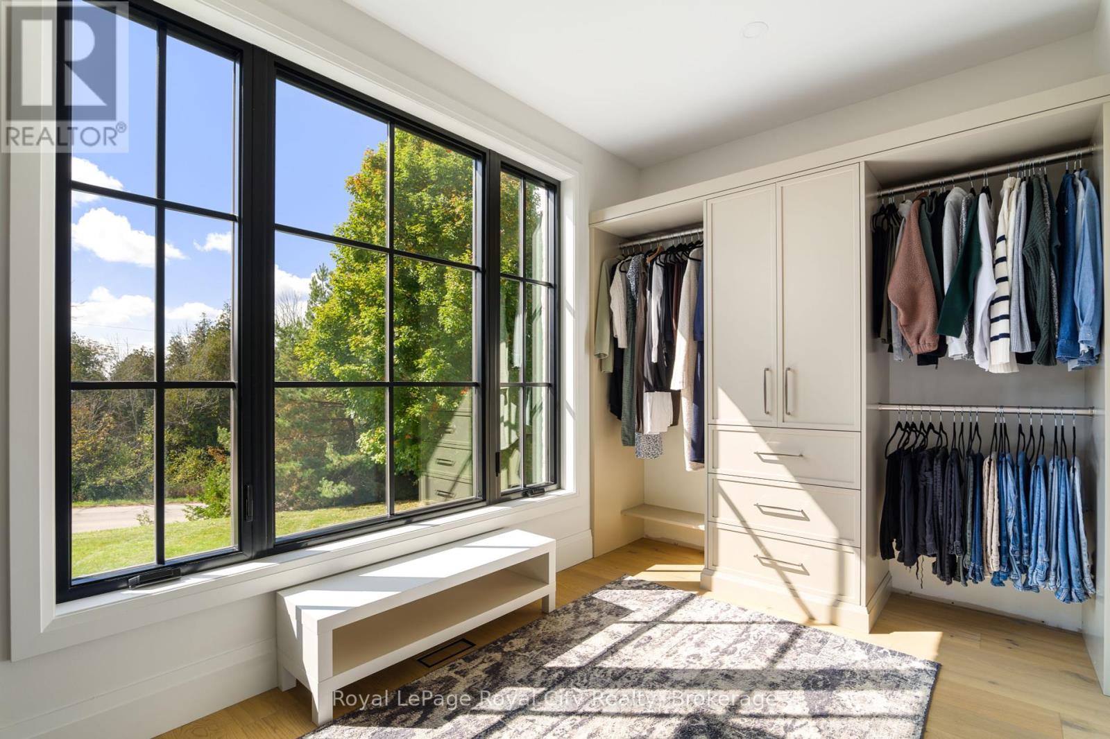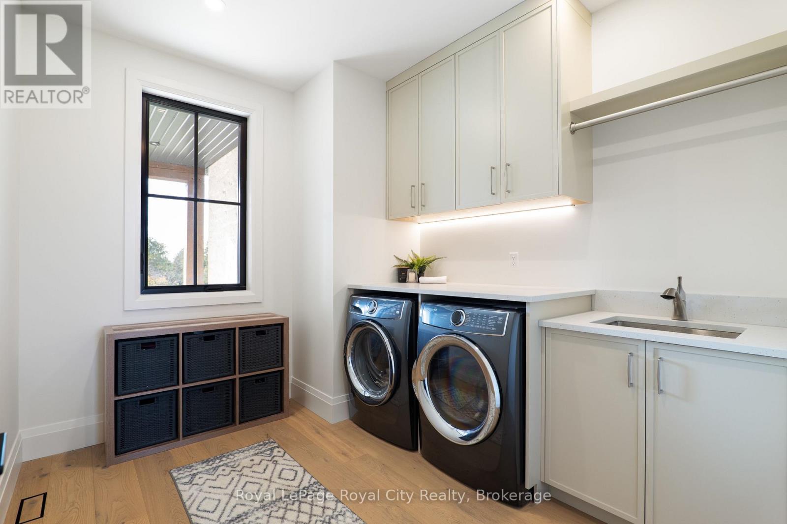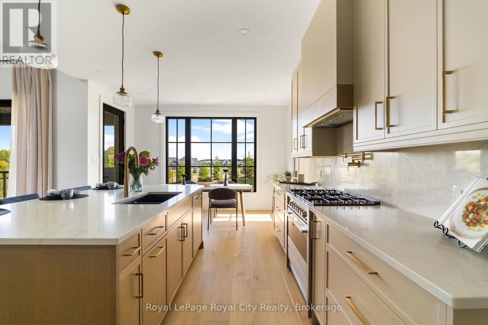 A hidden gem in Wellington County, just moments from Guelph, Elora, and Fergus. Here, you'll find yourself surrounded by the beauty of the rural landscape. This custom-crafted estate is a true statement; thoughtfully designed and intentionally created with entertaining in mind. At the heart of the home, the kitchen stuns with warm wood accents, gold fixtures, and a subway tile backsplash. A secondary butlers kitchen enhances the culinary experience, bringing both versatility and sophistication to every gathering. The living room is curated for elegant living, showcasing oversized glass sliding doors framed in sharp black trim and a striking floor-to-ceiling fireplace. Additional highlights include a luxurious main-floor primary wing with spa-inspired 5-pc ensuite and walk-in closet. Upstairs, find three spacious bedrooms, one of which offers a stunning 3-pc ensuite with beautiful gold finishes and earthy tones. The focal point of this storey is the sun engulfed bonus room perfect for a secondary living area or multi-purpose space. Just a stones throw away, step down to the Shand Dam Trail, launch your canoe or kayak into the Grand River for remarkable fishing and paddling activities. Nearly as central to the Shand Trail is the Pilkinton Overlook or the Wilson Flats, where one can go to embrace the peaceful sounds of nature alongside the solitude of the river. This home is a true sanctuary. Embrace the quiet life in the heart of Inverhaugh. (id:46441)
