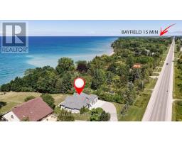 Exceptional Lake Huron waterfront bungalow set on a full acre of land with approximately 100 feet of sandy beach frontage and uninterrupted sunset exposure. Built in 2019, this is a true beachfront property where land, frontage, privacy, and setting define the value. The property is positioned on a prime stretch of shoreline and benefits from a ravine that serves as a permanent natural buffer, protecting the adjoining woodland and preserving long-term privacy and green space. This ravine effectively shields the property from future encroachment, creating a secluded, estate-like waterfront setting rarely found along Lake Huron. Designed to maximize lake views, natural light, and indoor-outdoor living, the home features an open-concept main floor with strong sightlines and seamless walkouts to the rear yard. Expansive windows keep the lake as the focal point throughout the living areas. An extensive private deck is integrated into a solid stair structure leading to the beach, creating a direct and secure connection between the home, yard, and shoreline. The wide, level grassy yard transitions naturally to the beach, which feels notably private due to the surrounding land configuration and limited sightlines along this stretch of shoreline. Ideal for full-time living, retirement, or expanded family use. A rare opportunity to secure authentic Lake Huron frontage with scale, privacy, and protected natural surroundings in a tightly held waterfront corridor. Conveniently located minutes to Grand Bend, 15 minutes to Bayfield, less than one hour to London, and within two hours of Toronto. (id:46441)