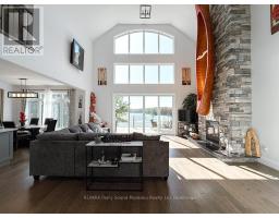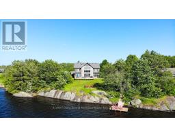 Set along the shores of beautiful McKellar Lake, this stunning newly built waterfront retreat offers the perfect blend of modern design, comfort, and natural beauty. The moment you step inside, vaulted ceilings and expansive windows draw your eye to the breathtaking views beyond, filling the home with natural light and creating an unforgettable first impression. A dramatic floor-to-ceiling stone fireplace anchors the main living space, providing a warm and inviting setting for gathering with family and friends. Thoughtfully designed with quality craftsmanship throughout, the home offers over 2,400 square feet of finished living space with five bedrooms and four bathrooms. The open-concept layout flows effortlessly from the living area into the dining space and kitchen, making it ideal for entertaining or enjoying relaxed lakeside living. Situated on approximately 2.4 acres with 165 feet of direct shoreline, on McKellar Lake, the property provides privacy, space, and exceptional waterfront enjoyment.The natural granite shoreline and rock outcroppings add character and beauty to the waterfront setting, creating a classic northern landscape. Whether boating, swimming, or simply taking in the peaceful surroundings, the setting offers the perfect escape. The exterior showcases a beautiful blend of stone, wood siding, complemented by a detached garage and additional storage. Most furnishings are included, allowing you to move in and begin enjoying cottage life immediately. Located just 20 minutes from Parry Sound, you'll enjoy easy access to the Stockey Centre for the Performing Arts, Bands on the Bay concerts, shopping, restaurants, scenic cruises, and flights over Georgian Bay. The charming community of McKellar also hosts a popular summer market and offers convenient local amenities nearby. (id:46441)