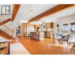 98 breathtaking acres in the heart of Elora's countryside and backing on The Grand River! As you arrive, the landscape unfolds like a storybook. ~45 acres of fertile, farmable land stretch toward the horizon, with a mix of hardwoods and cedar bushes creating the perfect backdrop for the estate. This is a place where deer wander at dusk, birdsong greets the morning, and every view feels nothing short of magical. At the rear of the property, the Grand River reveals itself in spectacular fashion, with over 2,500' of river frontage. Walking trails trace the river's path, guiding you through forested pockets - perfect for morning strolls or evening reflection. Known as one of Ontario's premier brown trout fisheries, enjoy fly fishing from your own backyard. The farmhouse has been renovated and thoughtfully updated, blending modern convenience (including geothermal heating) with rustic charm. There is even a covered patio overlooking the stocked, spring-fed pond. Here you will find a sandy beach, inviting long summer swims and quiet afternoons by the water's edge. An apple orchard blooms and bears fruit with the seasons, while manicured lawns surround the home. An original 50' x 100' bank barn stands ready for livestock or hobby farming pursuits, complemented by a large drive shed and a detached 3-car garage/shop (30' x 50')- ideal for equipment, vehicles, or creative projects. Located just 3 km from the historic town of Elora, placing you moments from its vibrant shops, restaurants, and cultural charm, as well as nearby attractions like the Grand River Raceway and Casino and the renowned Elora Gorge Conservation Area. This is more than a farm- it's a legacy property. A place with potential for farming, agri-tourism, and events, offering a lifestyle defined by beauty, privacy, and connection to the land. (id:46441)