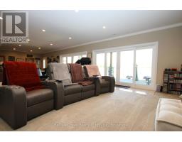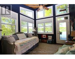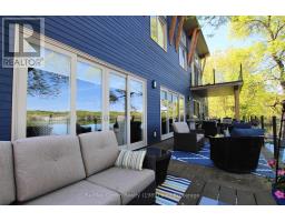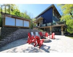 Welcome to lakeside elegance in this custom executive class 5-bedroom, 4-bath waterfront home offering over 4,000 sq. ft. of beautifully designed living space. Set literally on the shores of sought-after Restoule Lake with over 500' of owned shoreline, designed with sophistication in mind, this home offers the perfect setting for luxury living and exceptional entertaining. The main level impresses with soaring 10 ceilings, open-concept living and dining complete with gas fireplace and custom built-ins plus a wall of windows showcasing the panoramic lake views. The chef's kitchen features dual wall ovens, stove cooktop, double dishwashers, walk-in pantry, and double refrigerators - perfect for entertaining. Walk out to the massive deck (60' x 11'8") with glass railings, or relax in the warm and inviting Muskoka room. A office/den with deck access and full bath completes the main level. Upstairs, a grand hallway leads to five spacious bedrooms. The primary suite is a private retreat with a spa-inspired ensuite, walk-in closet, and elevated private lakeview deck. The upper level also features an additional full bath with luxury walk-in shower and convenient laundry. The lower level boasts a spectacular 48' x 19' rec/games room opening to a 61' x 11'6" covered patio to enjoy your lakeside retreat regardless of weather. Step directly onto the dock from the patio or into the relaxing hot tub, then gather around the lakeside fire pit for an evening of star gazing. Additional features include: detached double Carport, lakeside storage building or art studio (30'x14'), Surveillance system, outdoor timed lighting, dual level climate control, 3 speed fans in every bedroom, back-up generator, 50'x16' floating docking system w/pergola. This stunning waterfront oasis offers endless possibilities - whether as a luxury bed-and-breakfast, a private retreat or a year-road residence for the "Ultimate Lakeside Lifestyle". Seller will consider holding a first mortgage. (id:46441)