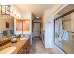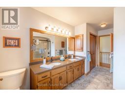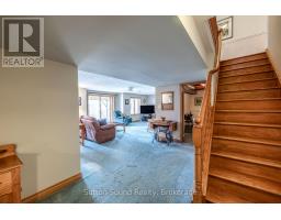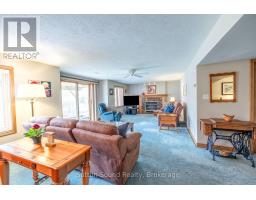 Welcome to this exceptional O.C. Long bungalow, tucked away on a private cul-de-sac in the prestigious Hunters Run neighbourhood, where serene living meets breathtaking views of the Potawatomi River. This beautifully maintained home offers a perfect balance of comfort and elegance, with a bright, airy layout designed to impress.Step outside to the 17' x 12' walkout deck-an ideal spot to relax and unwind while taking in the peaceful river backdrop. Inside, the main floor features three spacious bedrooms, including a primary retreat with his-and-hers closets and ensuite privileges, along with the convenience of main floor laundry and two full bathrooms.The home offers both a separate living and dining room, enhanced by charming custom stained-glass accents, while the sun-filled eat-in kitchen is a true standout with quartz countertops and newer stainless steel appliances-perfect for everyday living and entertaining alike.The fully finished lower level provides exceptional additional living space, highlighted by an oversized family room with a cozy gas fireplace featuring elegant Wiarton marble. Walk out to a poured concrete patio surrounded by beautifully landscaped perennial gardens, all framed by those stunning river views. A versatile office space-currently used as a non-conforming fourth bedroom-adds flexibility for growing families or guests.With a timeless all-brick exterior, hardwood flooring throughout, and an interlocking brick double driveway leading to a two-car garage, this home offers both style and practicality. Ample storage ensures everything has its place.A rare opportunity to own a peaceful retreat in one of the area's most sought-after communities-this is a home you won't want to miss. (id:46441)